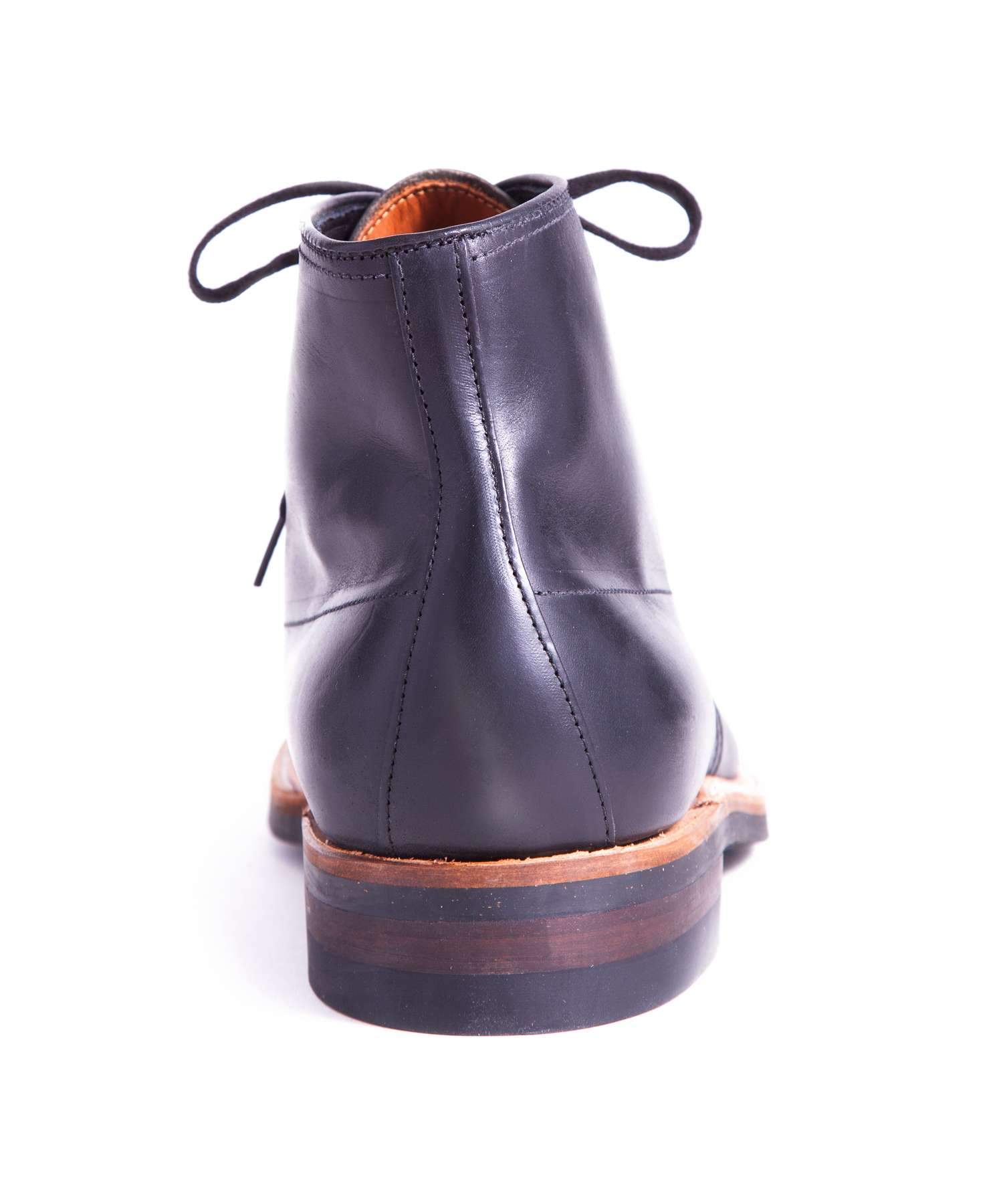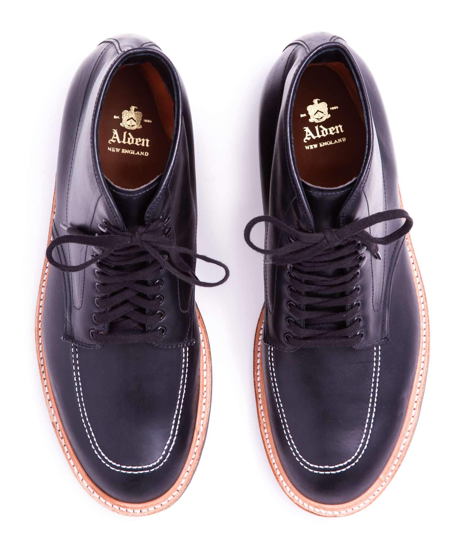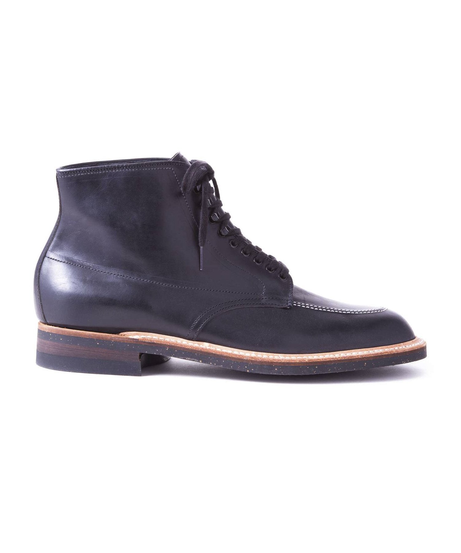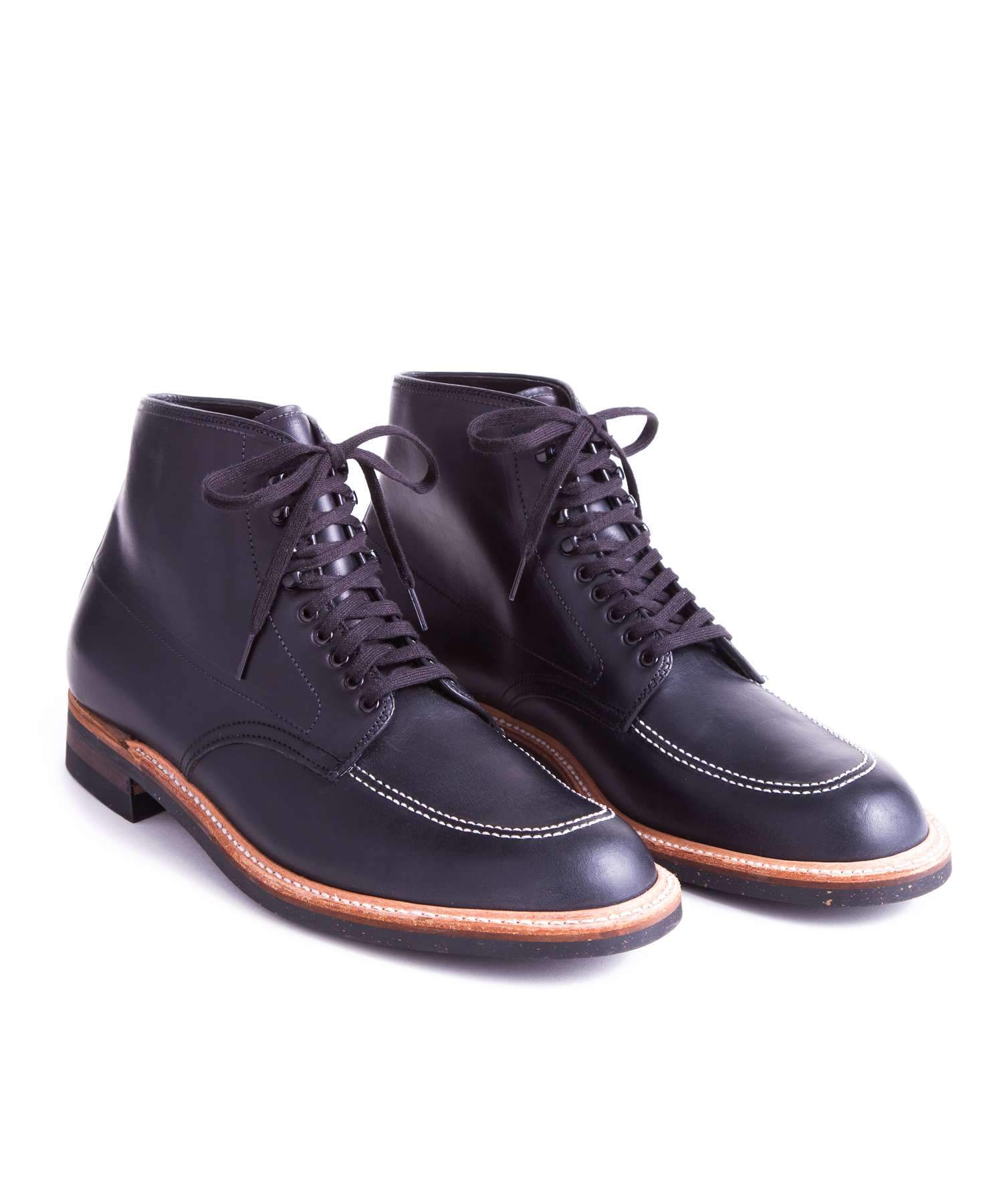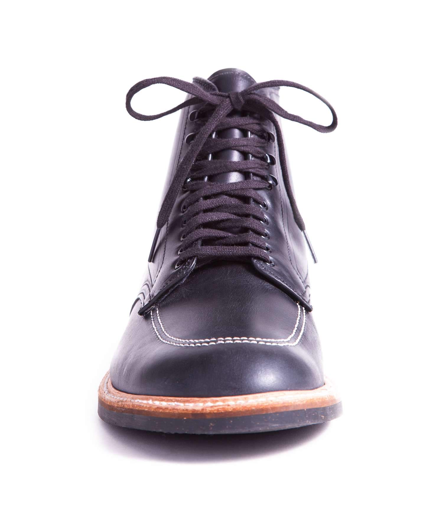 Rugged lace-up boot from Alden in Black. Waxed calf leather upper.