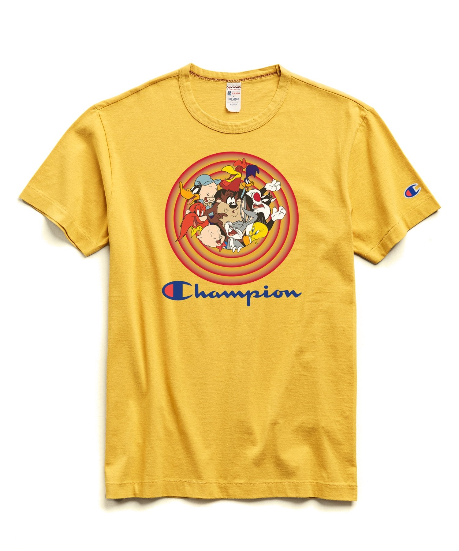 This classic tee is crafted from quality 100% Cotton in a family-owned factory in Toronto, using vintage flat-lock machines, and detailed with an epic throwback Looney Tunes graphic in collaboration with Champion. Fine details such as red cover stitching at the back of the neck, a self-fabric bound neck, and contrast sand-colored stitching elevate this humorous spin on an everyday basic. Our premium Champion knitwear is designed and manufactured exclusively by Todd Snyder.