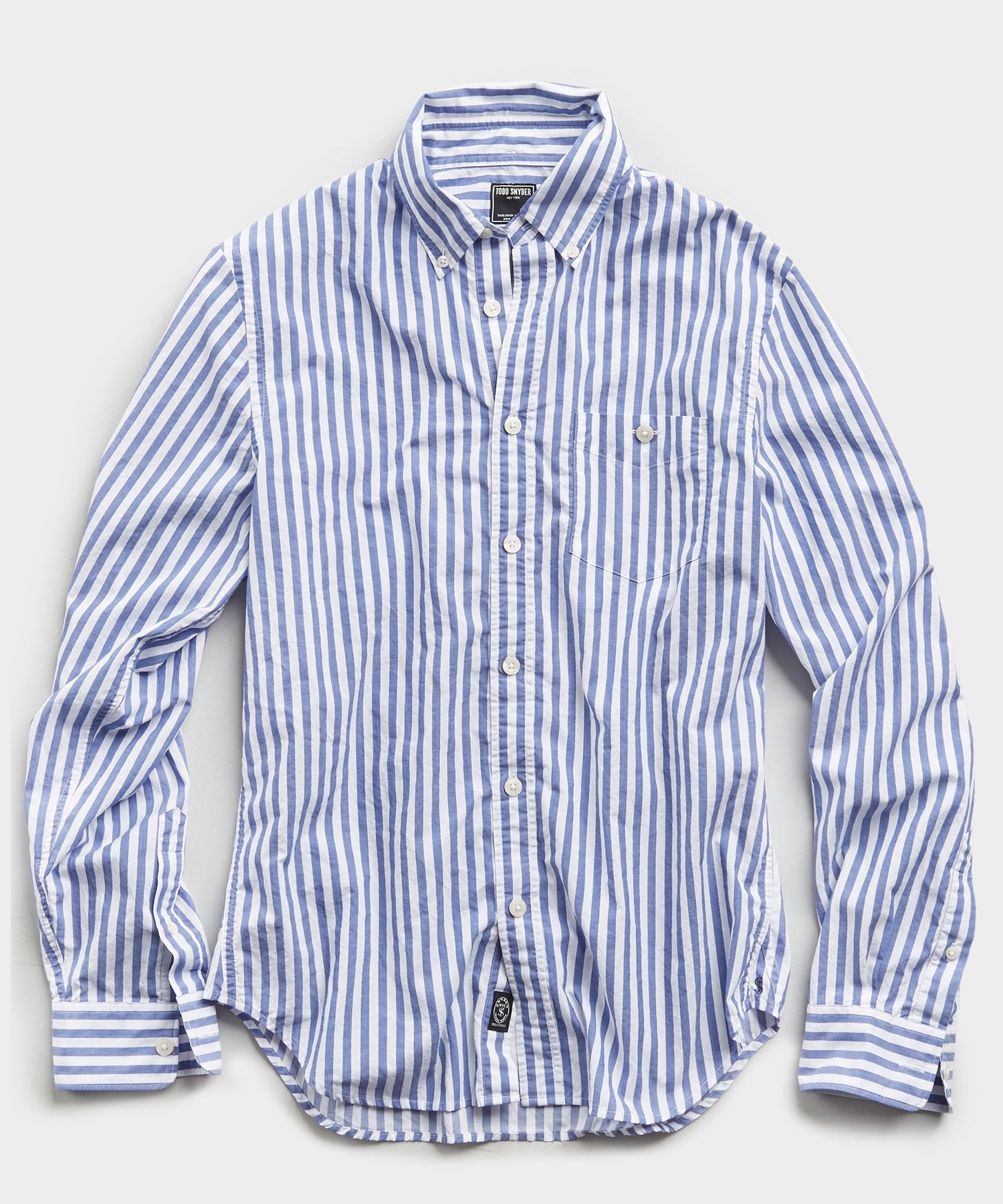 We’ve refined the classic shirt with a slightly elongated collar point length for impeccable good looks—whether you’re wearing it with or without a tie. Crafted from premium mid-weight, garment-dyed bold blue stripe fabric from Somelos, a family-owned mill in Portugal that’s been in operations for generations. It’s the stylish staple that every man should have as a go-to item.