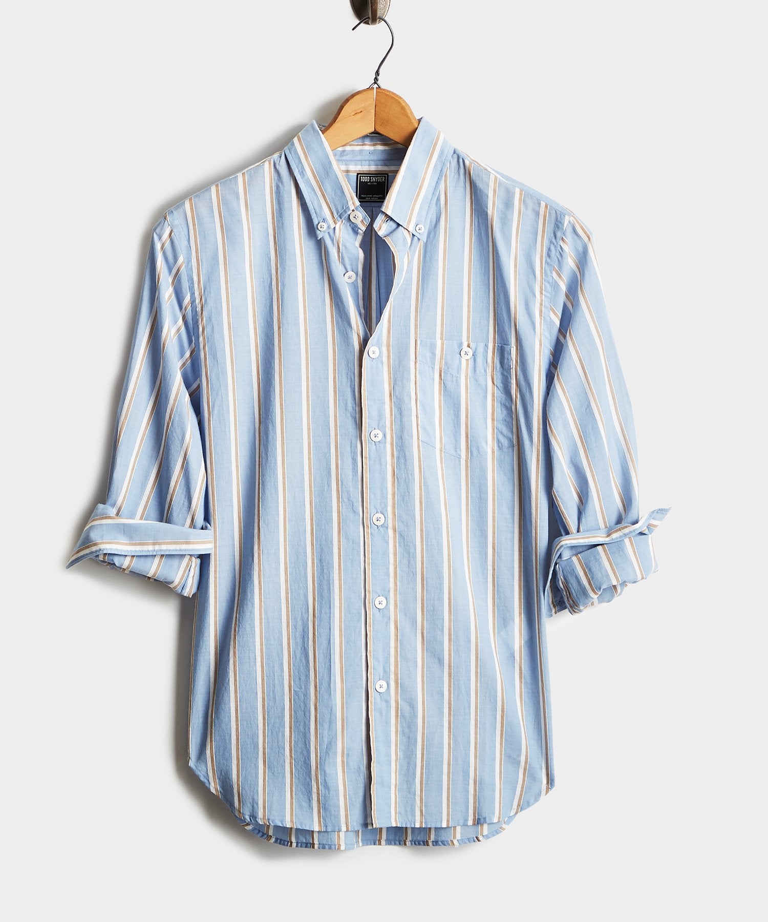 Blue Stripe Button Down Collar Long Sleeve Shirt