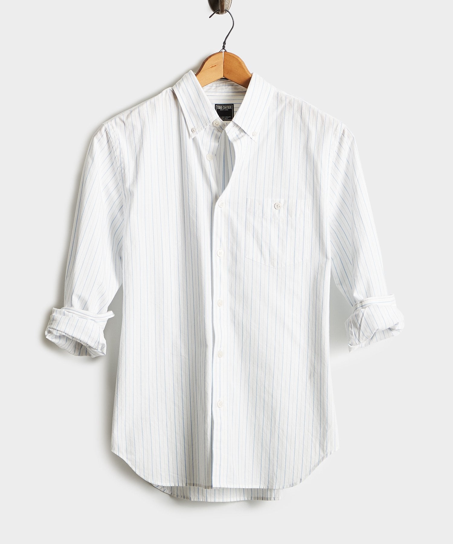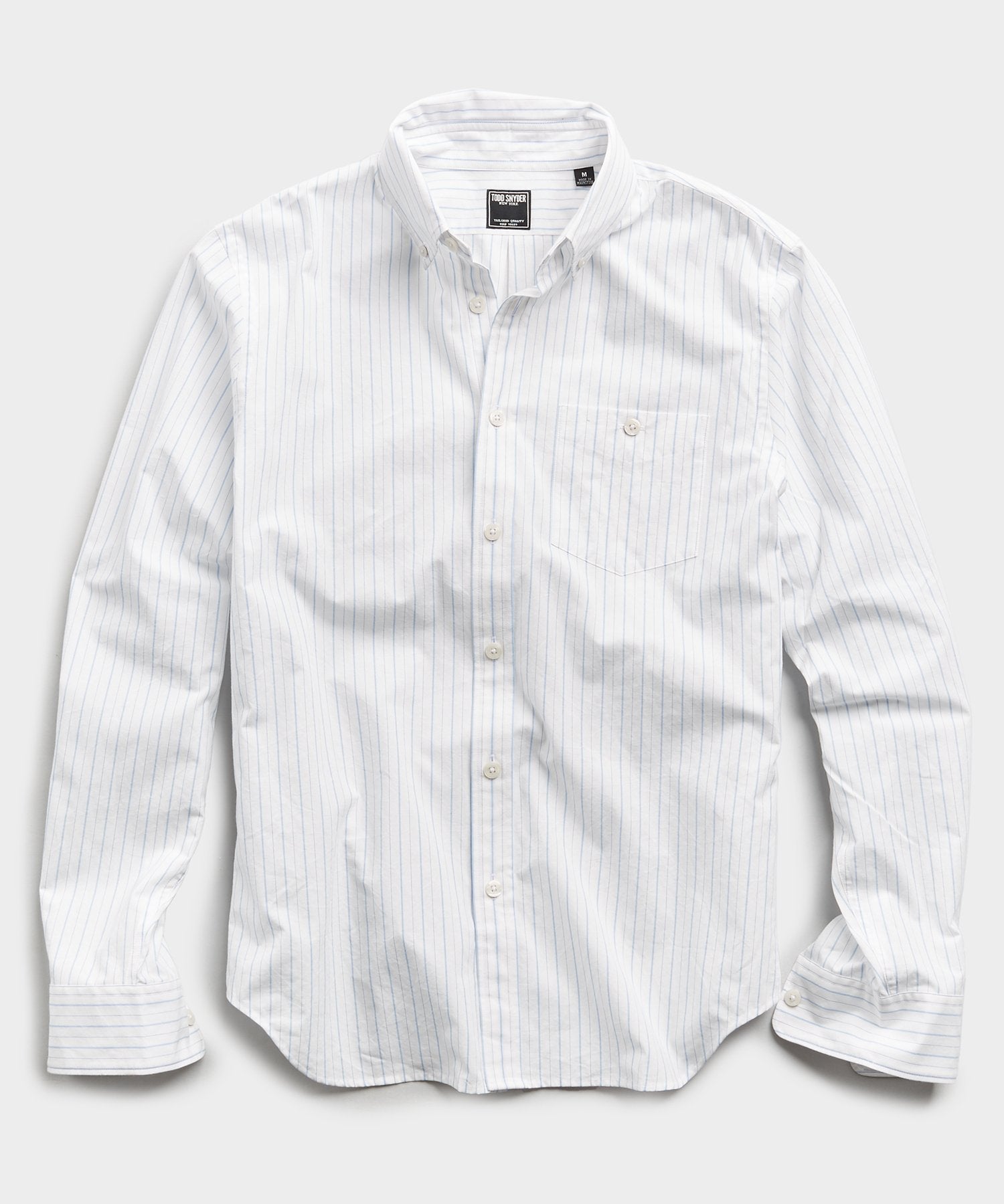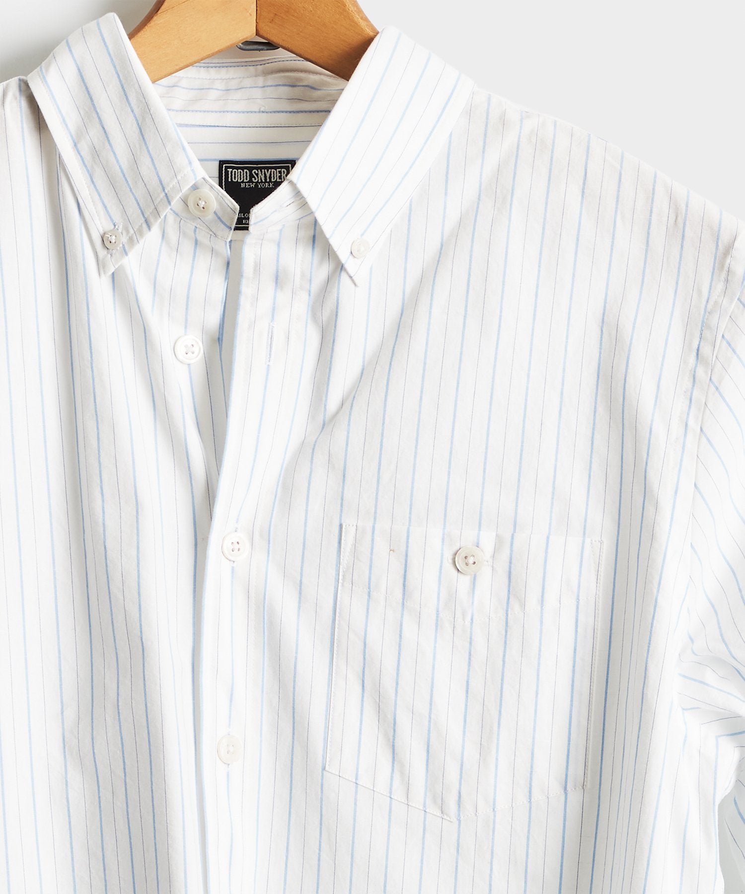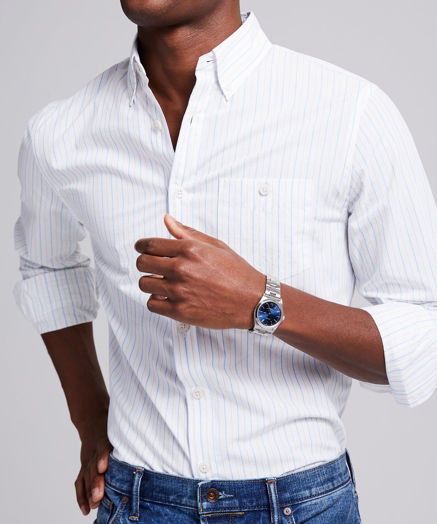 In a white and blue pinstripe fabric, our signature shirt is the epitome of laid-back luxe, made of 100% Cotton from Somelos in Portugal. With its versatile modern fit, this style staple is made to be lived in and looks even more elegant with a few well-earned wrinkles.
