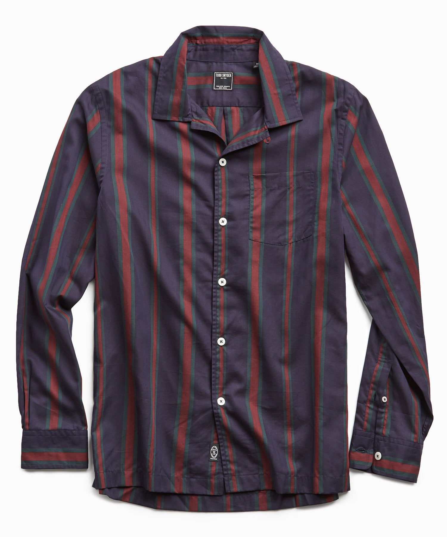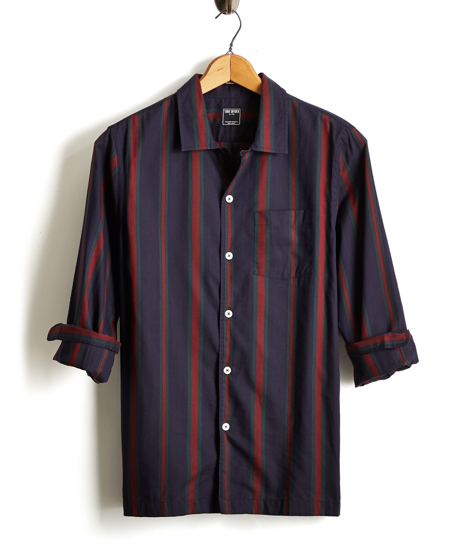 Camp Collar Red/Green Stripe Long Sleeve Shirt