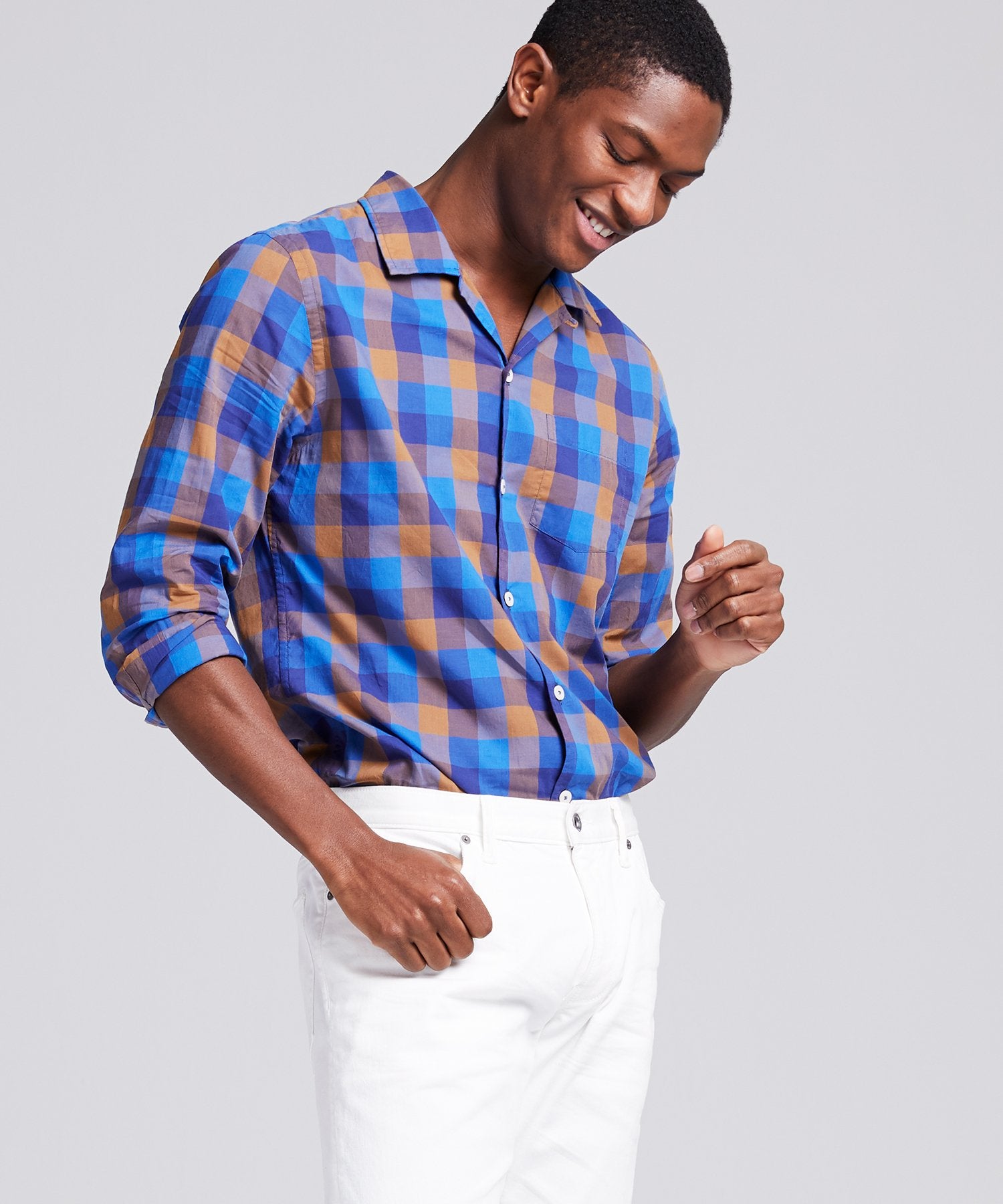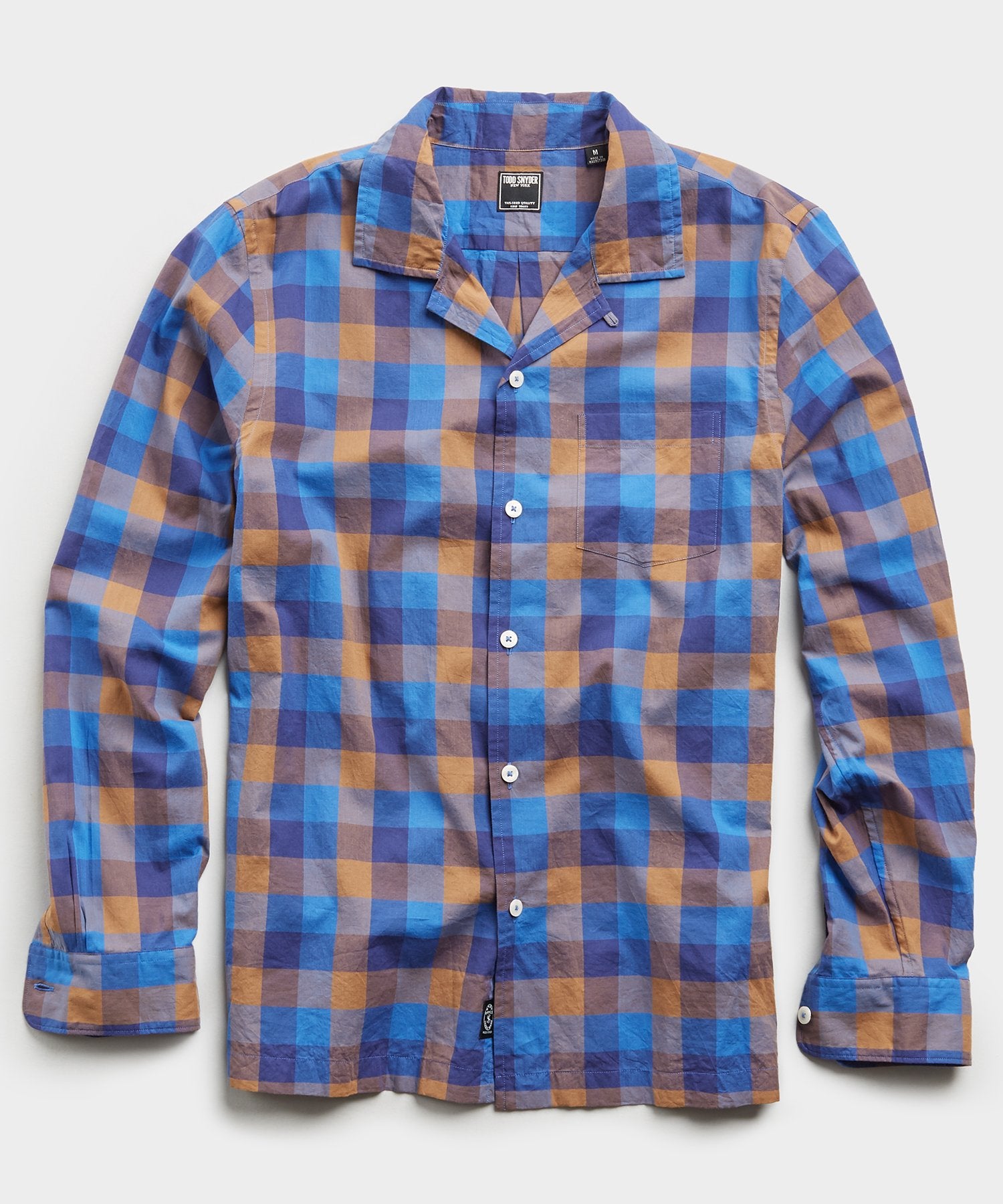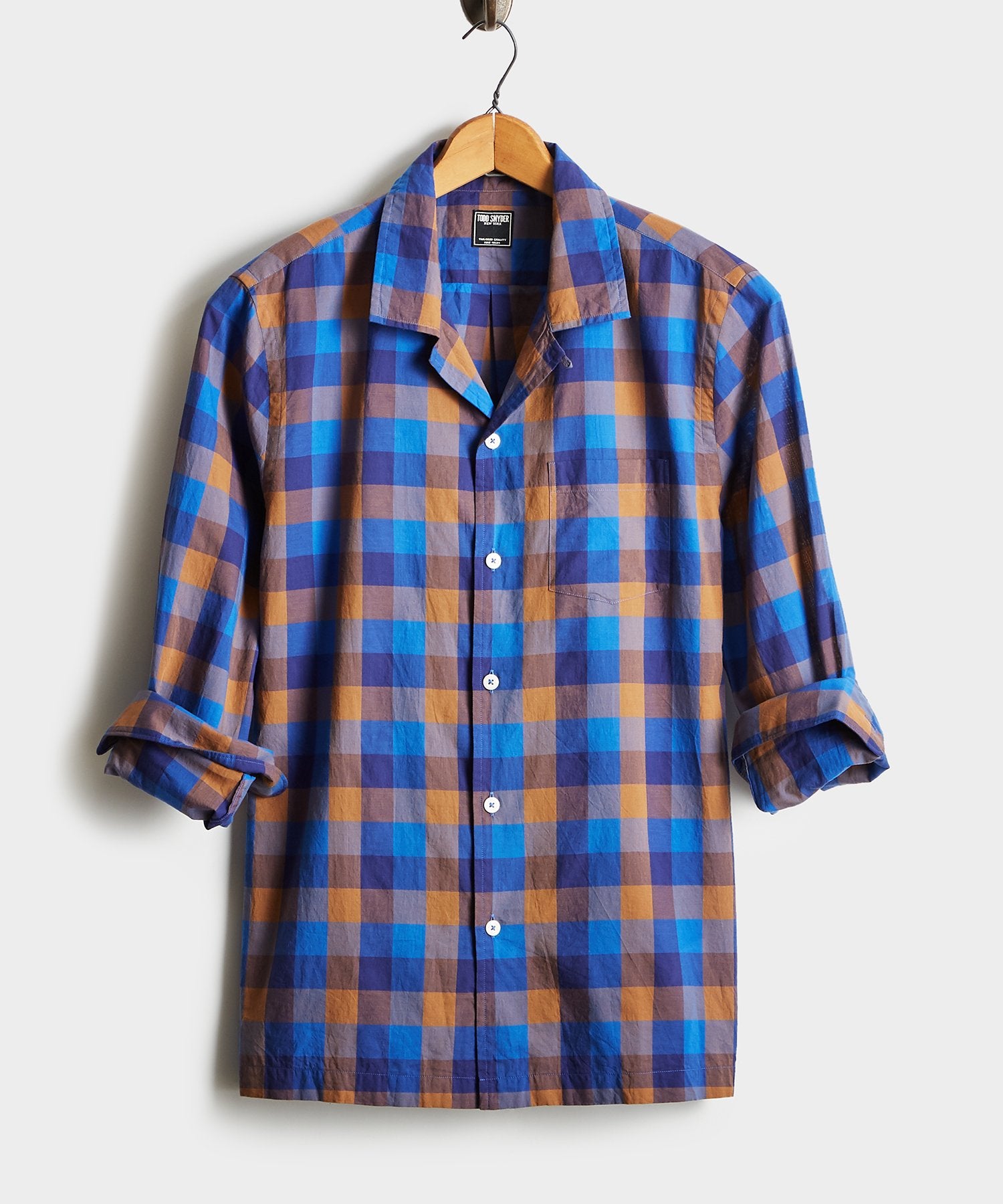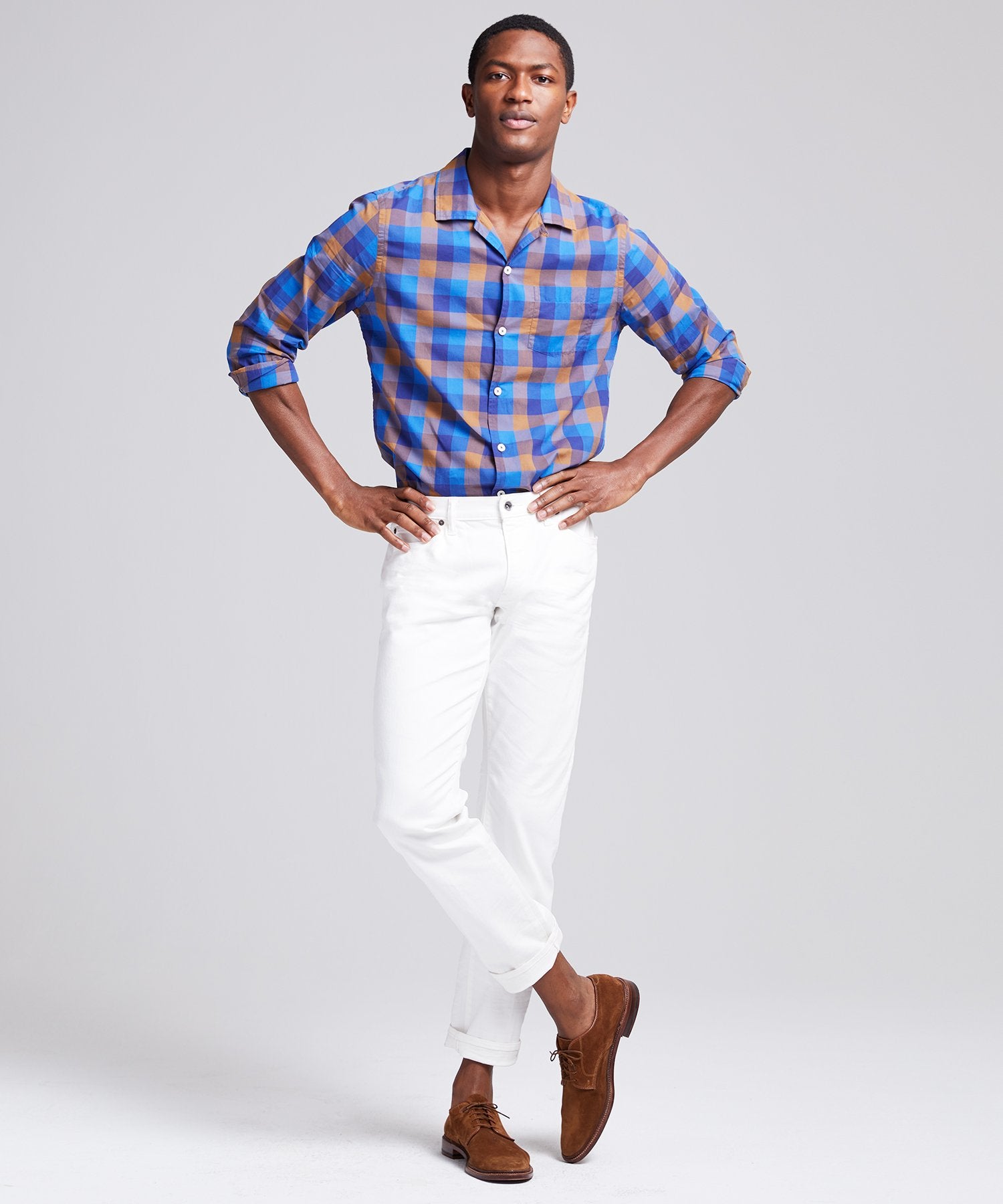 We’ve reimagined our signature camp collar shirt in a premium, lightweight cotton from Portugal’s Somelos mill in a chestnut blue plaid that’s ready for day-to-day style (but will also pull double-duty for weekend hangs or date nights). Constructed with a slim, modern fit, vented straight hem and back locker loop for wrinkle-free hanging.