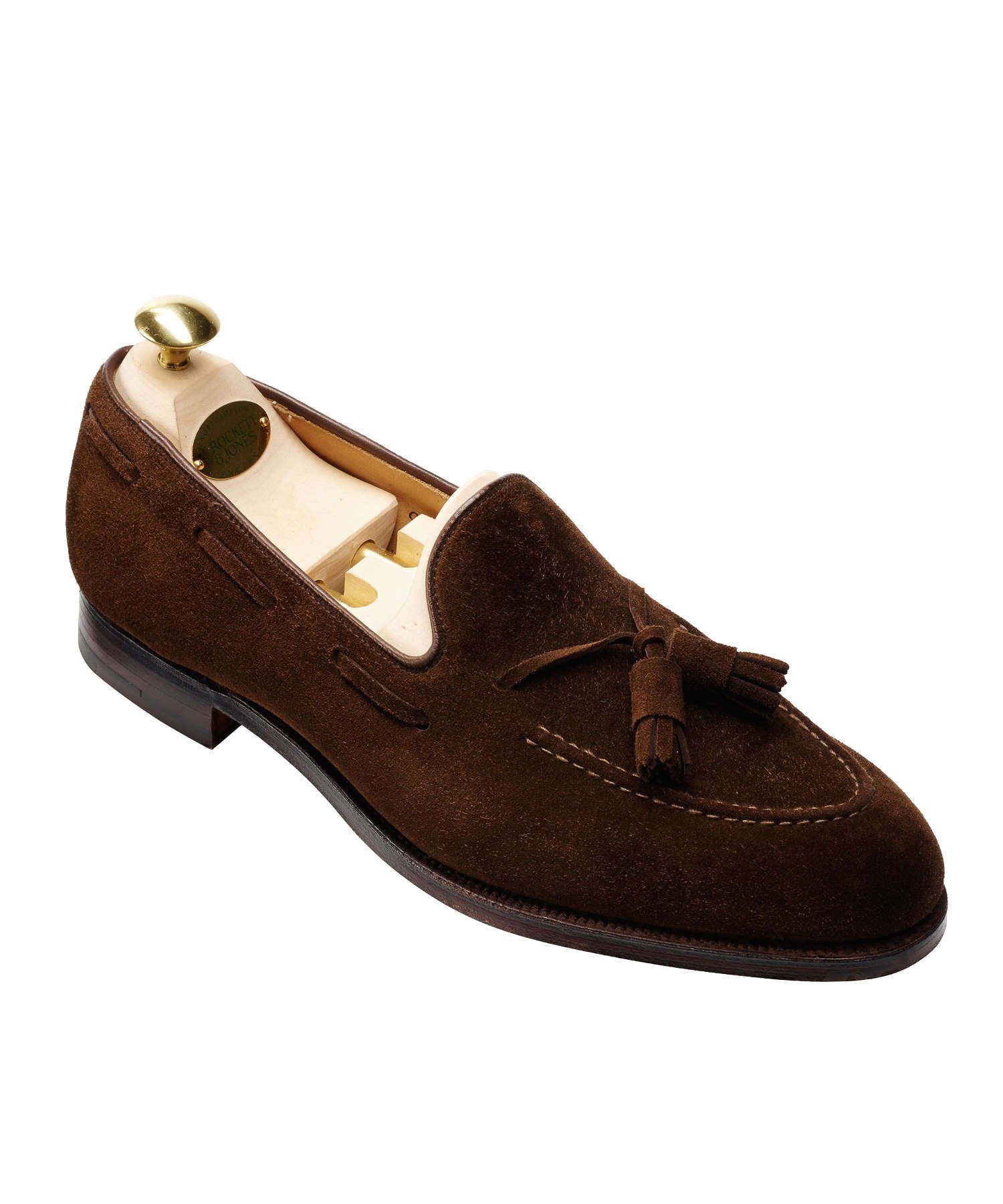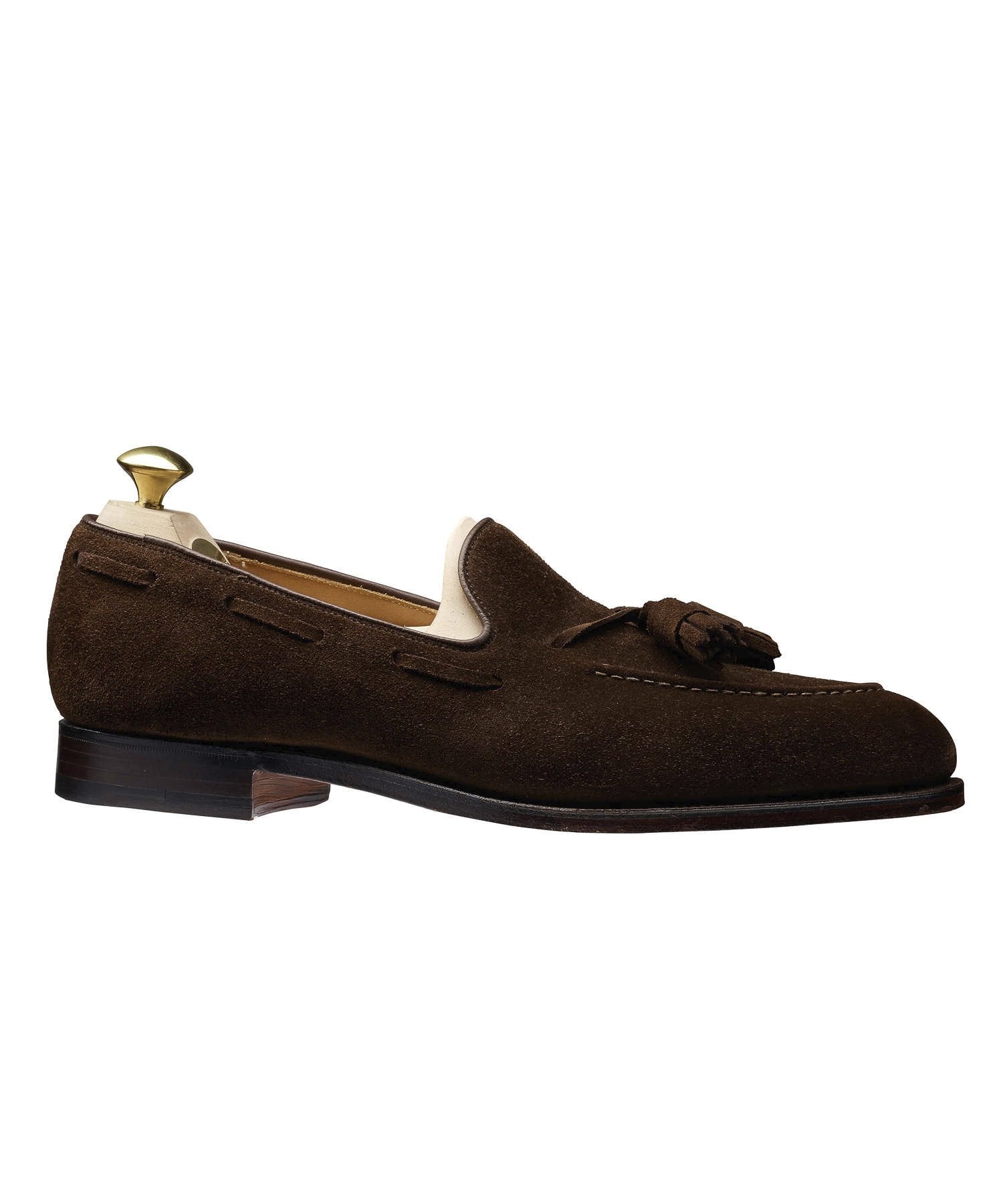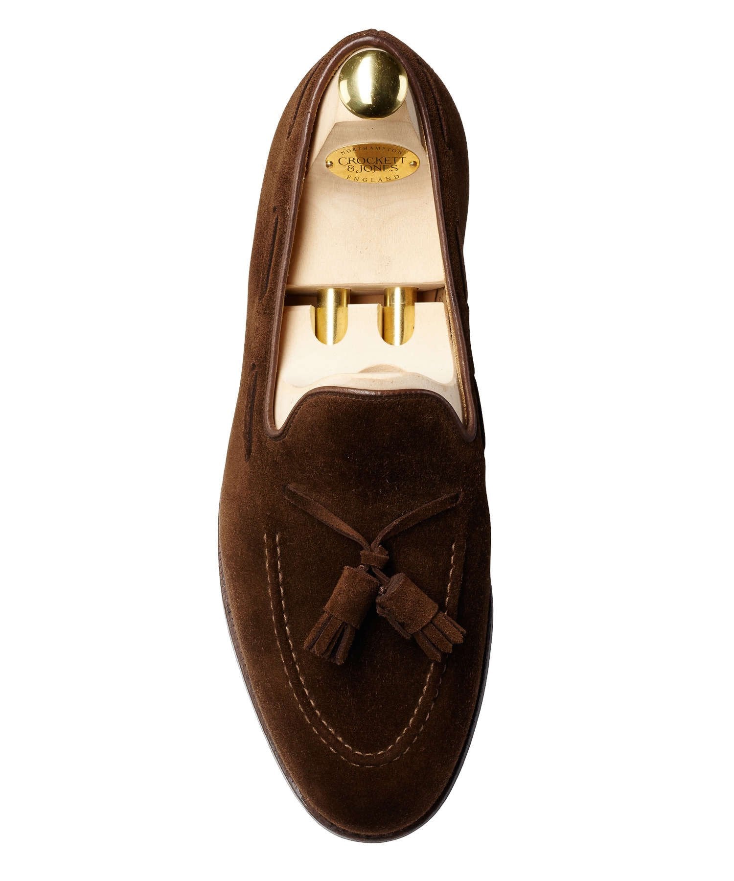 Crockett and Jones Cavendish Suede Tassel Loafer in Dark Brown