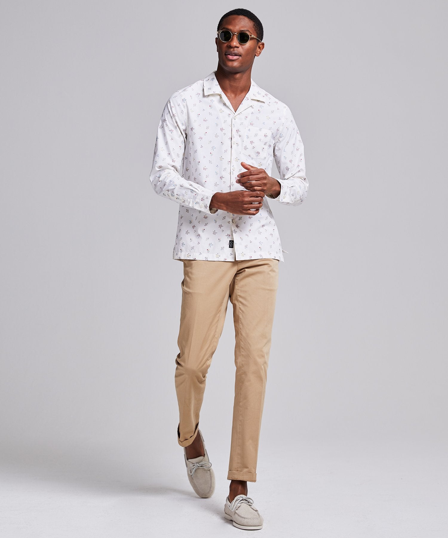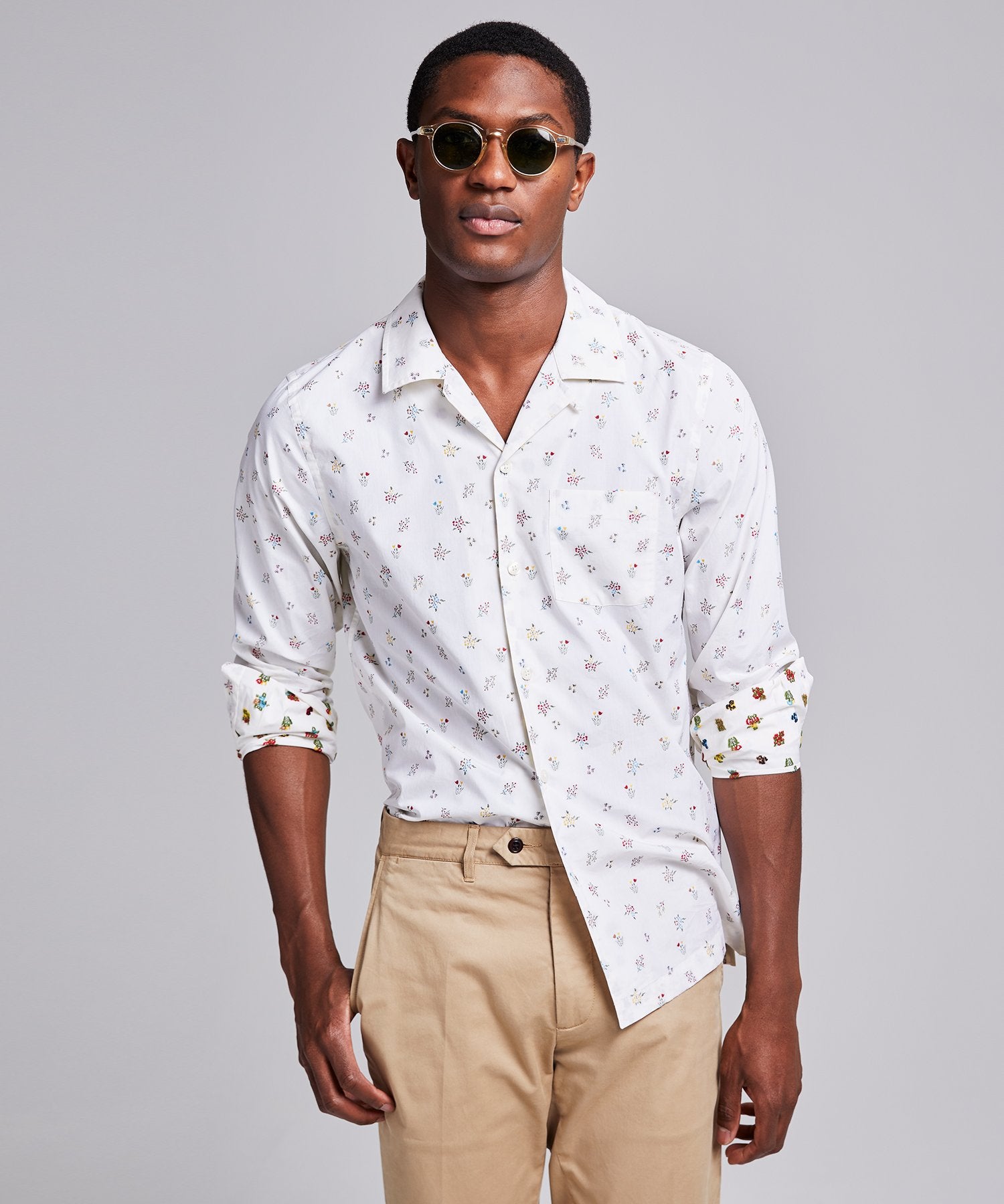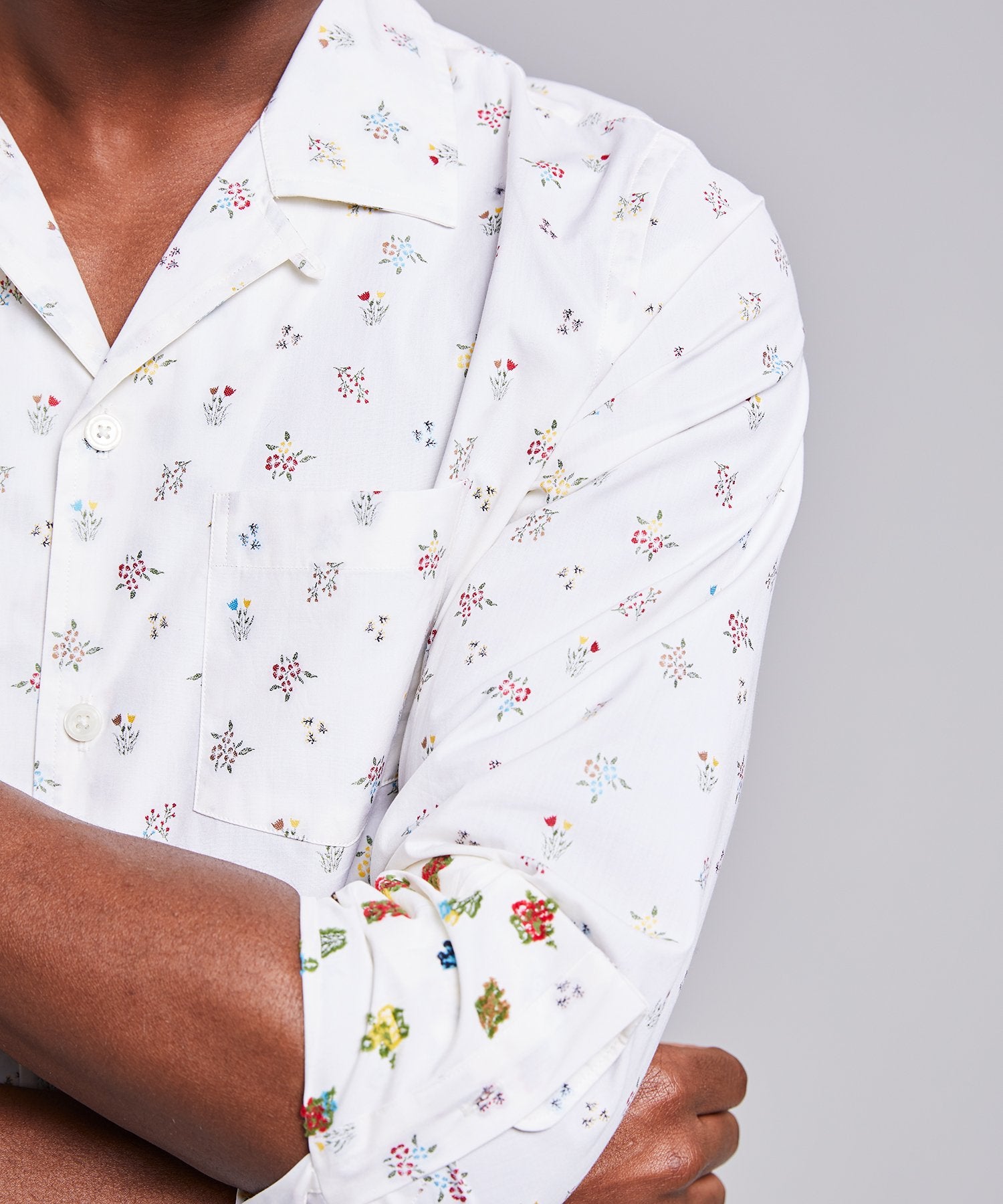 We’ve reimagined our signature camp collar shirt in a premium, lightweight cotton from Italy’s Albiate 1830 mill in an embroidered white floral print that’s ready for your day-to-day style (but will also pull double-duty for weekend hangs or date nights). Constructed with a slim, modern fit, vented straight hem and back locker loop for wrinkle-free hanging.
