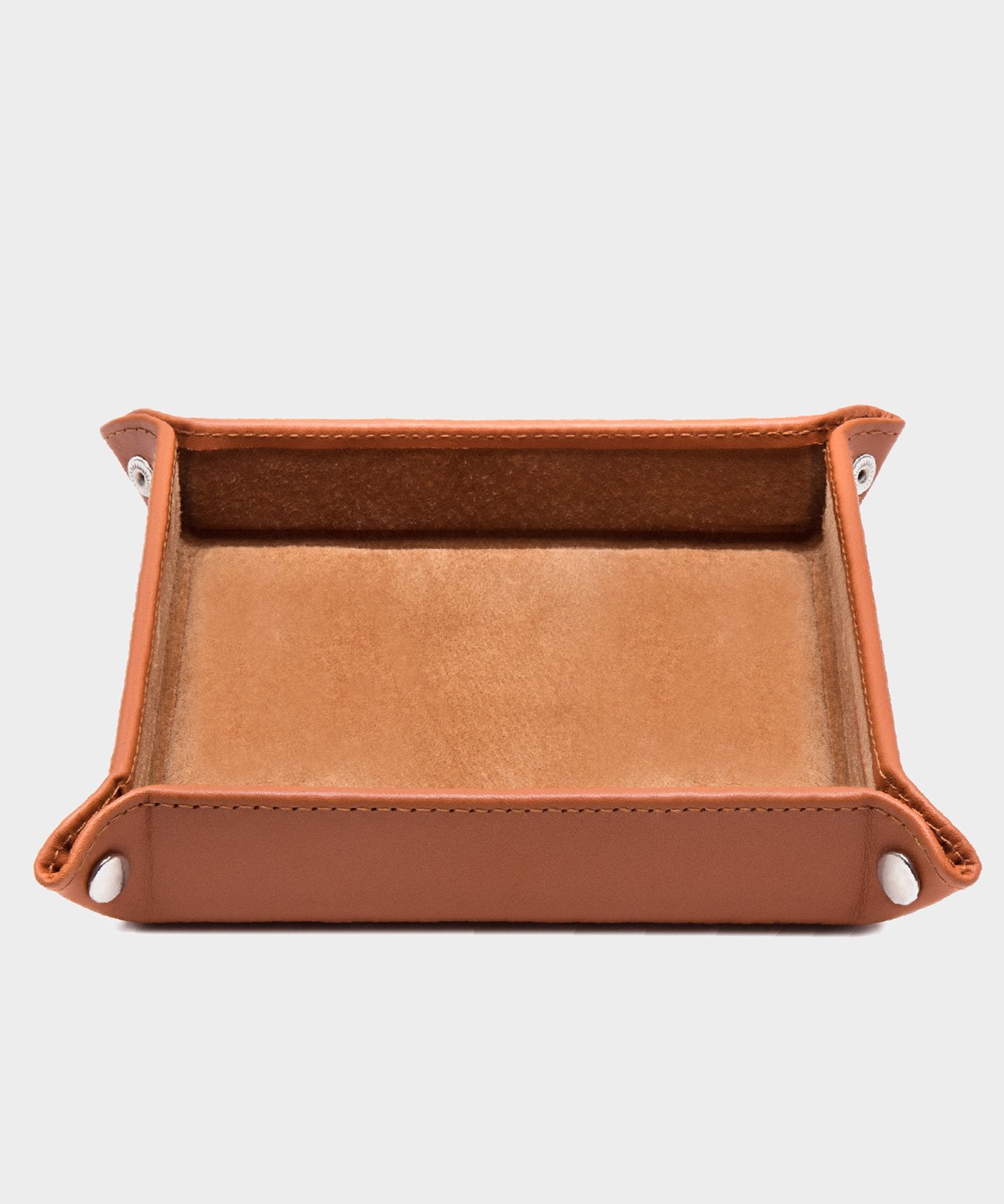 The Ettinger Square travel tray is the ideal size to house your accessories and essentials on the road. Featuring snap fasteners in the corners to flatten the tray, the tray is made from a waxy hide on the outside and soft pig suede inside.