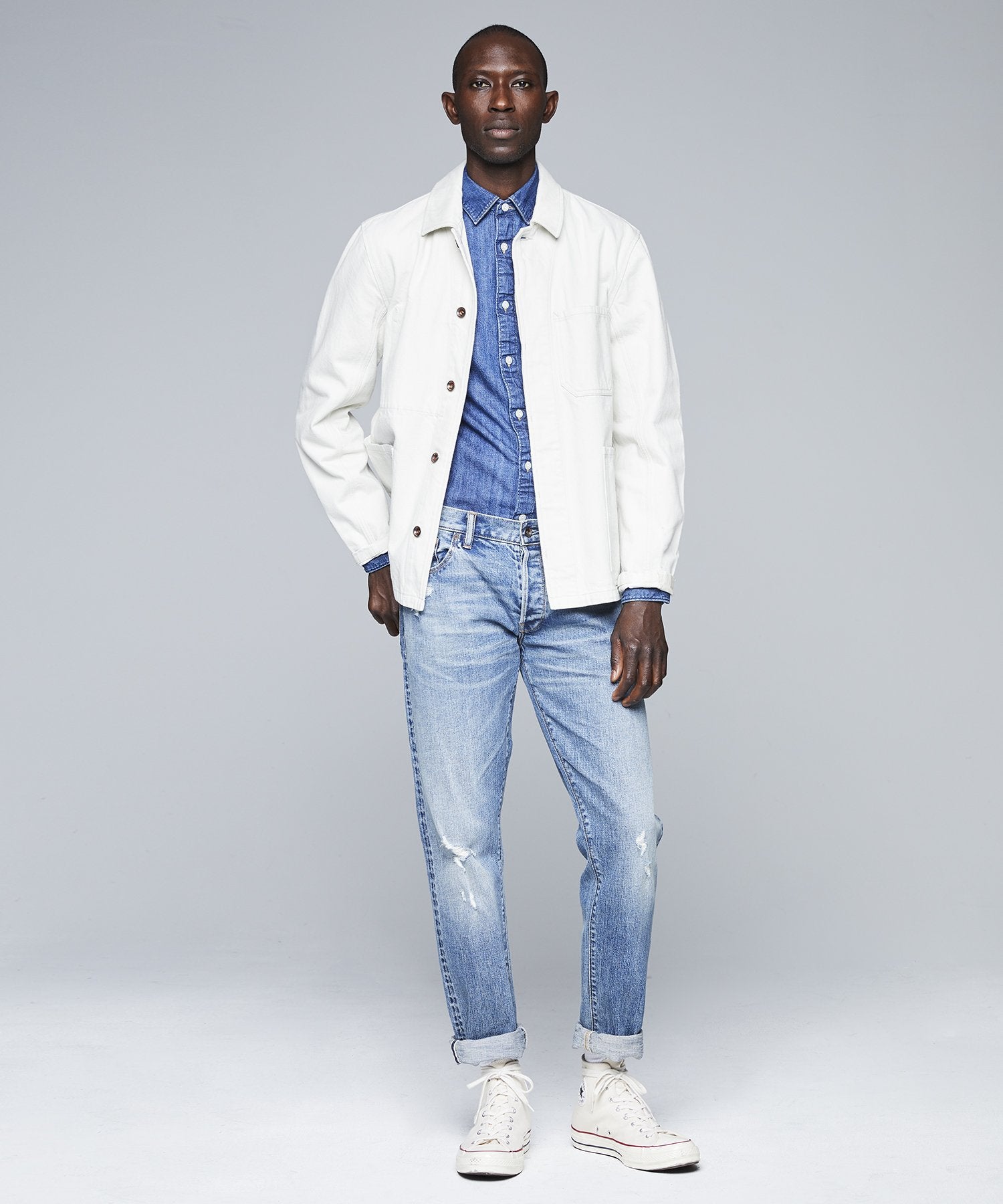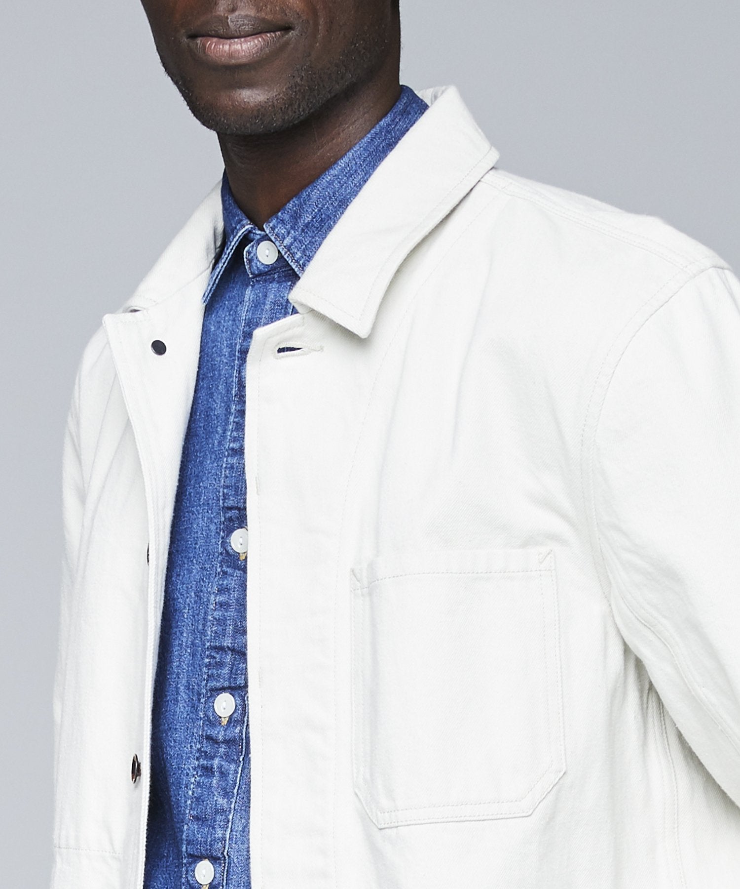 Our version of the utilitarian classic, inspired by a vintage garment and remade in a premium lightweight white denim that will wash down and break in beautifully over time—just like your favorite pair of jeans. Finished with premium details from the single interior pocket to shank buttons.