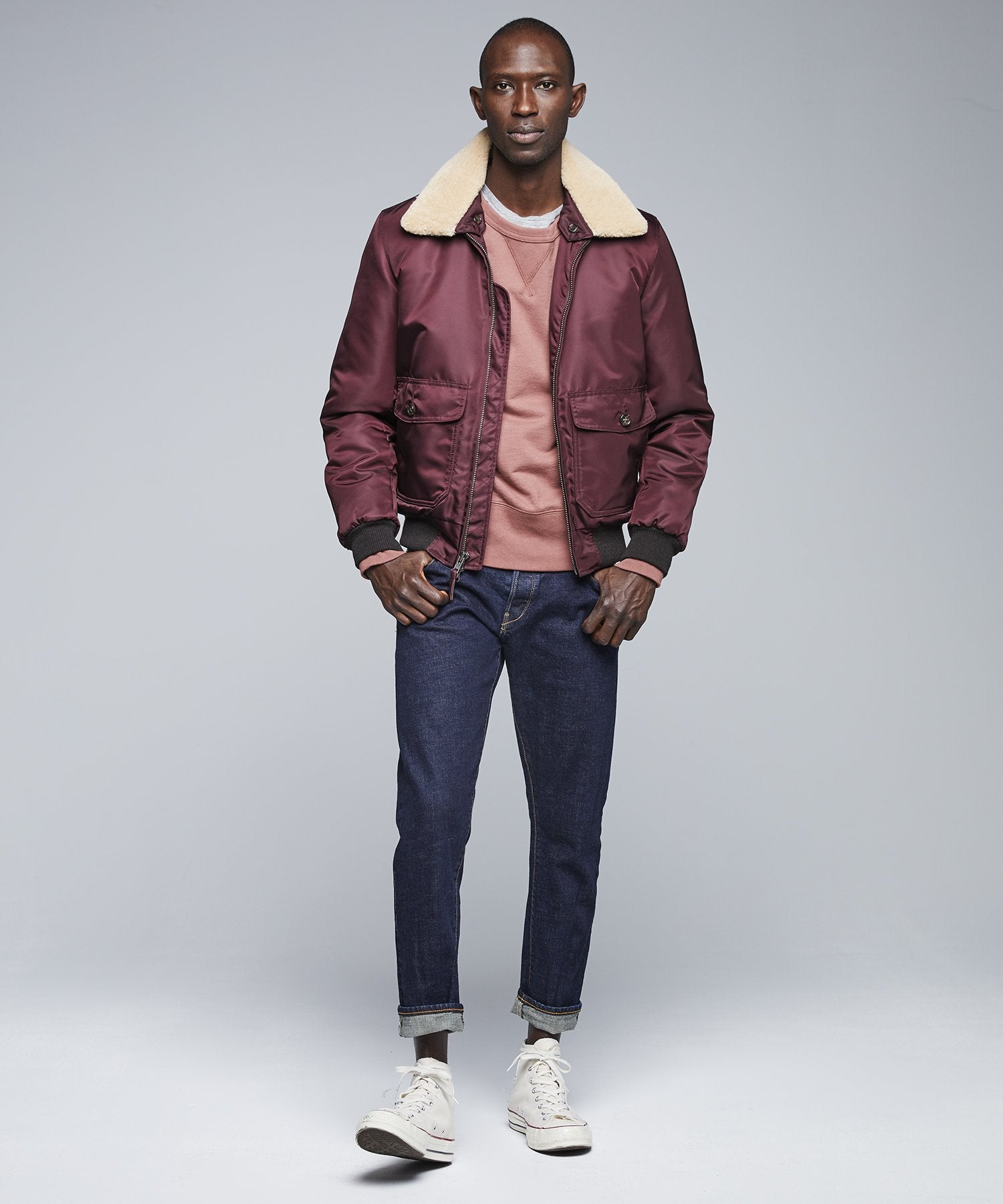 Crafted in partnership with legendary San Francisco-based manufacturer Golden Bear — who’ve been creating handsome utilitarian outerwear since 1922 — this heritage bomber is inspired by an aviator classic and stepped up with luxe materials and detailing. Fusing exceptional durability with an elevated sensibility, this essential third layer adds sophistication to off-duty looks, and lends a laid-back twist to tailored separates.