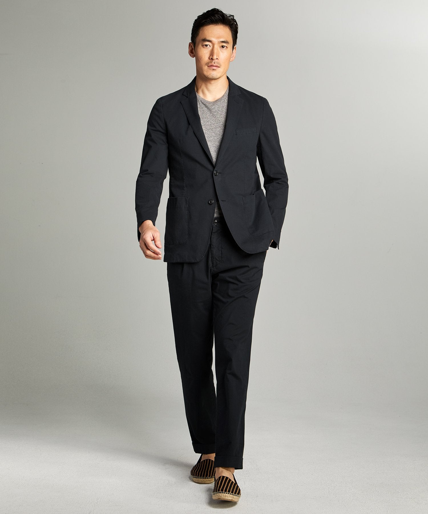 Our garment-dyed traveler suit jacket is a spin on a tailored sport coat, made in Portugal with a premium stretch Italian Cotton. The two-button jacket is crafted with horn buttons, patch pockets, and prepared sleeves allowing functional buttons. This tailored piece feels refined yet almost fits like a shirt for a more casual approach to your seasonal suiting. Wear as a suit with matching pants, or pair with denim, tee, and sneaks for a staple weekend look.