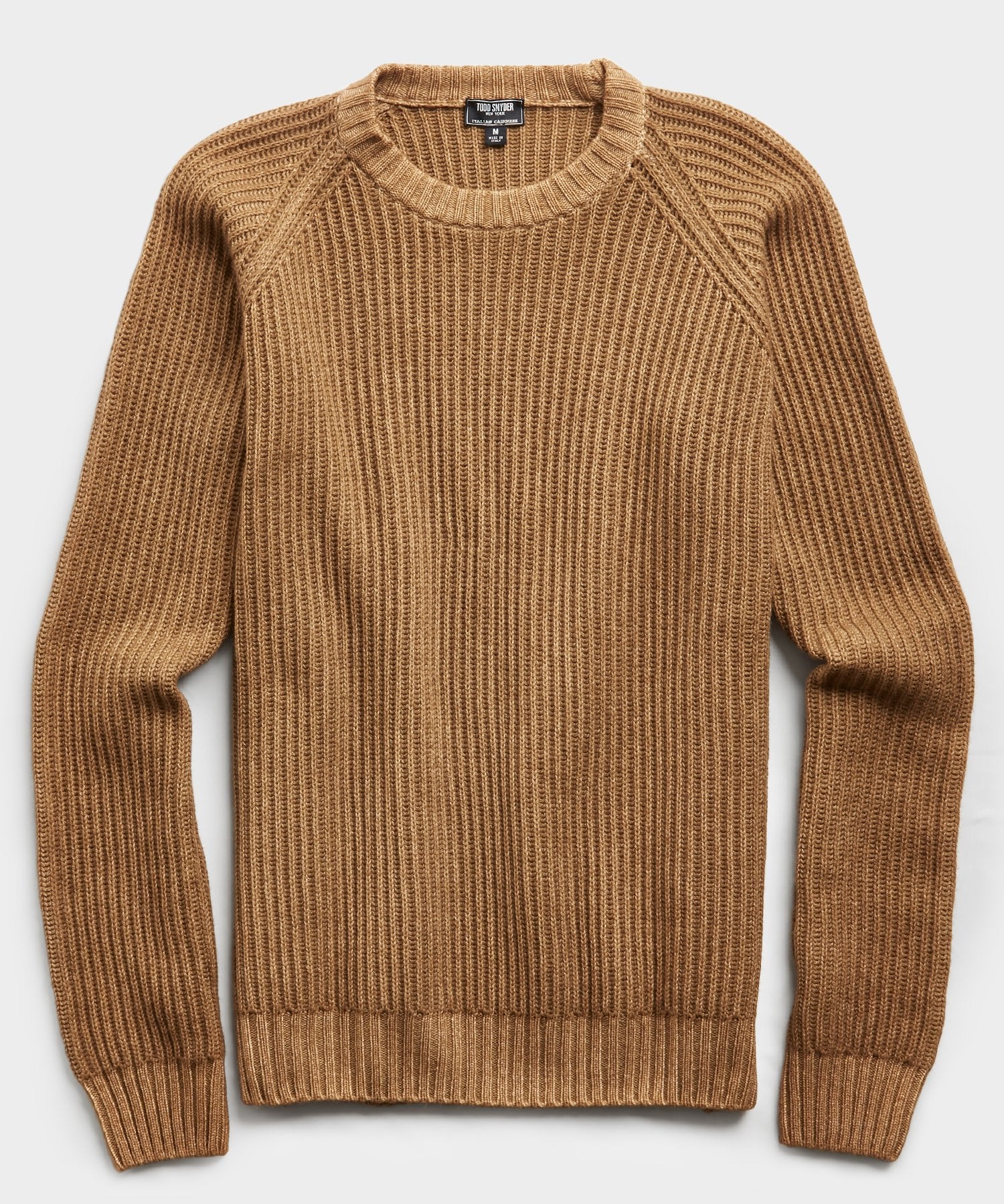Garment Dyed Cashmere Raglan Rib Crew in Camel
