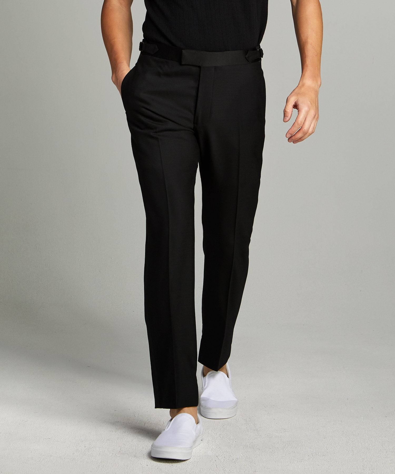 Introducing the Black Label Sutton Tuxedo pant; a modern trim fit for every guy. This Black Label tuxedo is made in the USA with wool from renowned Italian mill Tollegno. It's a versatile and classic style that works with matching jacket or as a foundation piece for other looks.