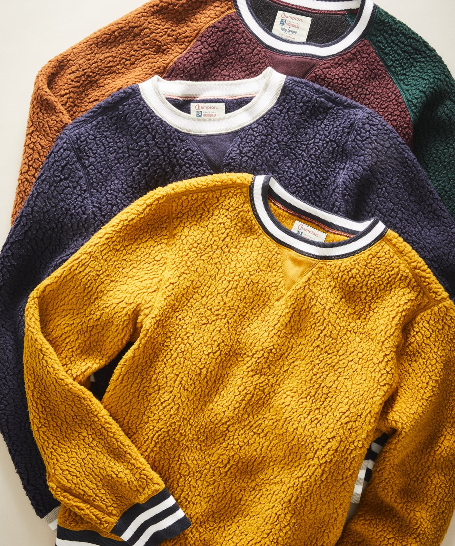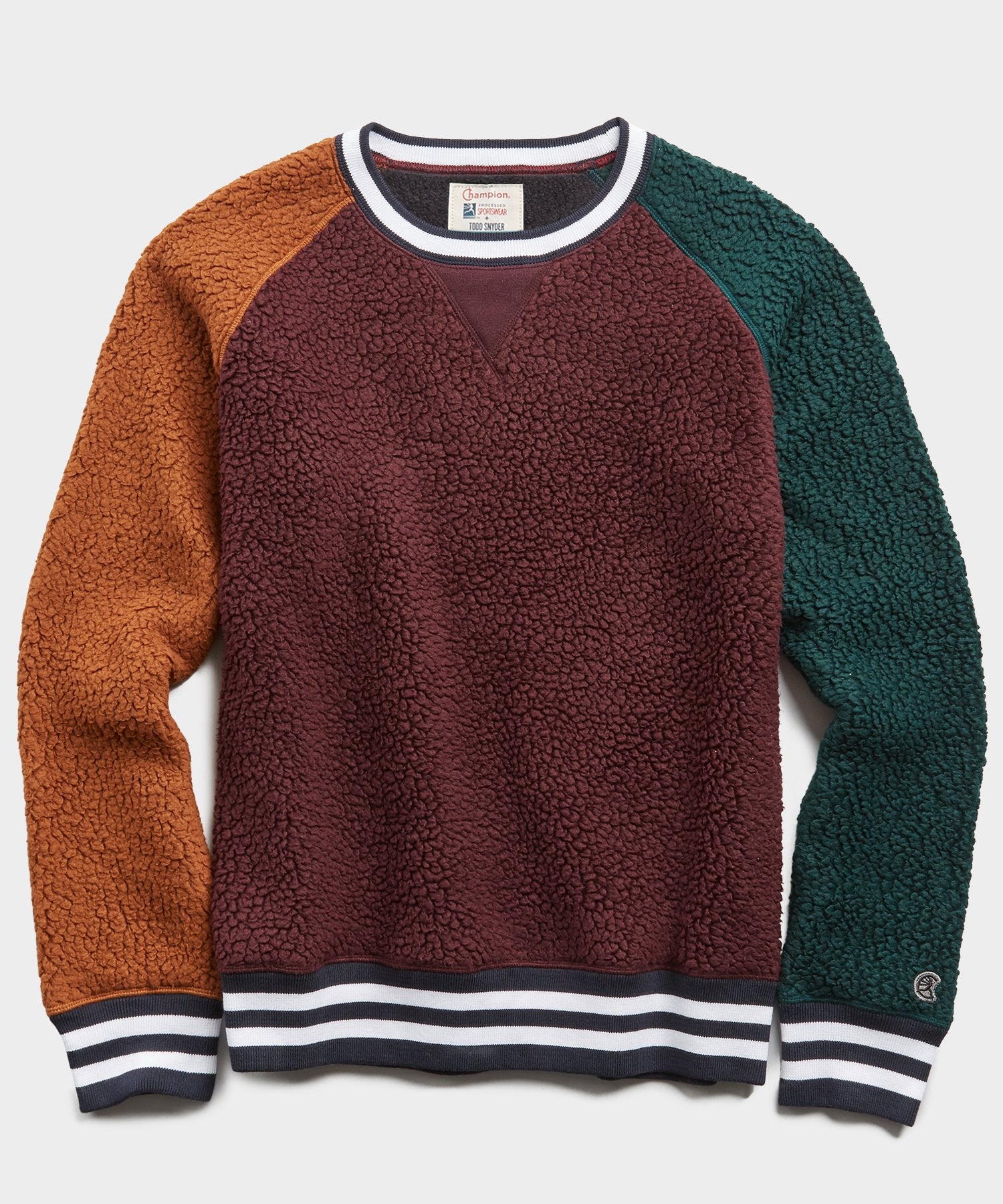 We love an eye-catching color block style for fall and this version made from Polartec® 100% Polyester brings in the warmth you need for a perfect mid-layer. Features contrast sleeves, raglan detailing on the armholes, and contrast rib with stripe tipping at the neck, cuffs, and waistband. A true staple that pairs as well with its matching sweats as it does a more tailored pant for a style-forward get up. Our premium Champion knitwear is exclusively designed and manufactured by Todd Snyder.