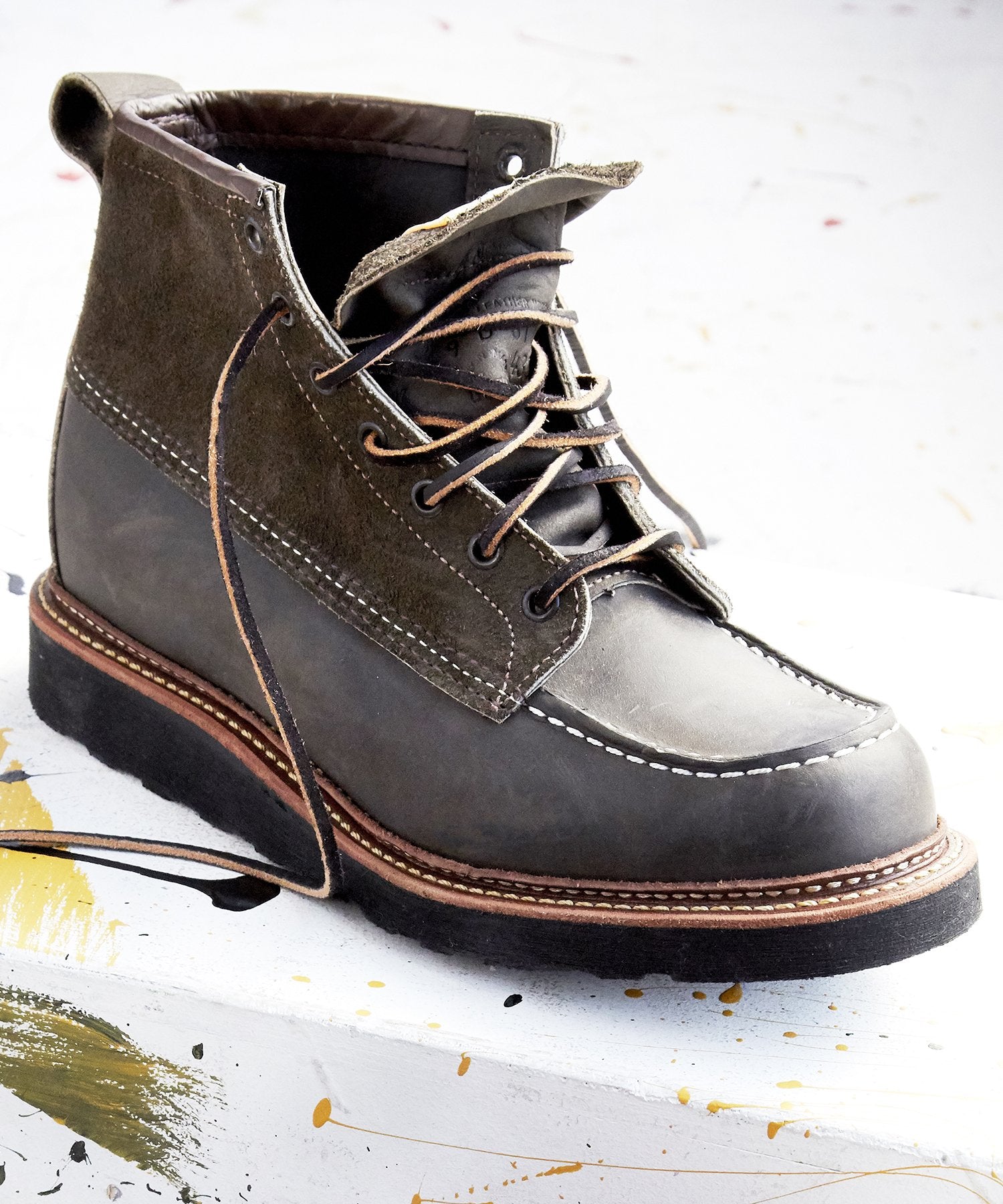 Heritage boots get the haberdashery treatment in Todd Snyder’s new collaboration with legendary American footwear company Red Wing Shoes, who since 1905 have been making premium work boots that are stylish and comfortable enough for all-day wear. This fresh release is inspired by the 877 classic moc boot, an iconic Red Wing safety shoe style that’s been worn by millions of American workers and even an American president (Dwight D. Eisenhower) since its introduction in the the middle of the last century.