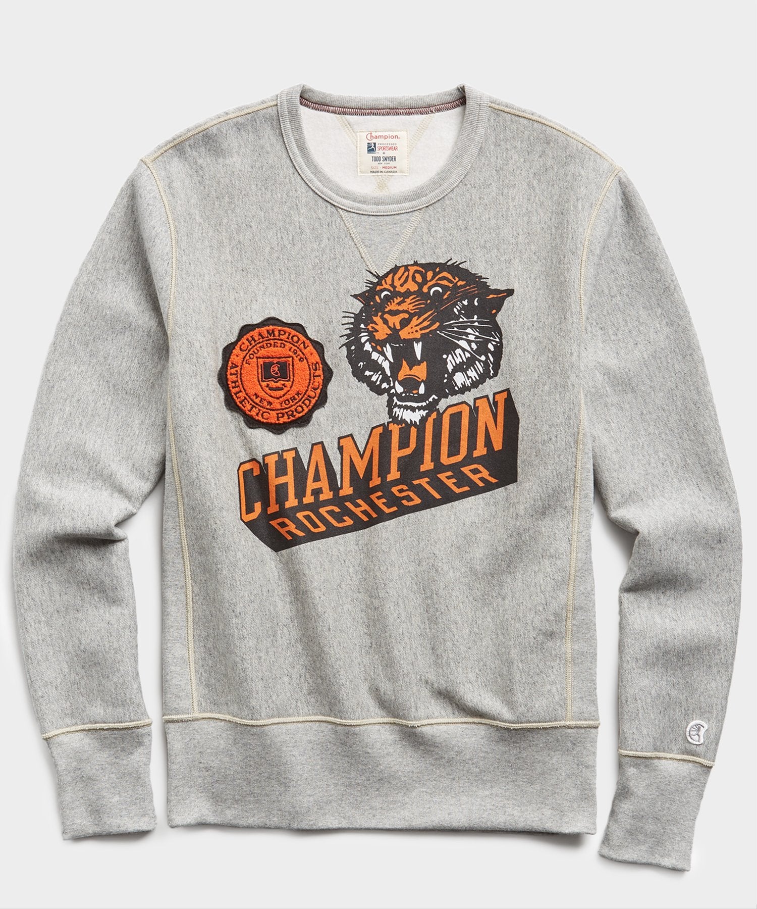 Inspired by the town in which Champion was founded, the Rochester Tiger Graphic Sweatshirt is a playful addition to your fall staples. Made from soft fleece cut on the reverse weave for comfort, this slim fit graphic sweatshirt has a chenille print applique on the center front. Rock this with a pair of sweats for athleisure feel or pair with denim for a playful weekend date.