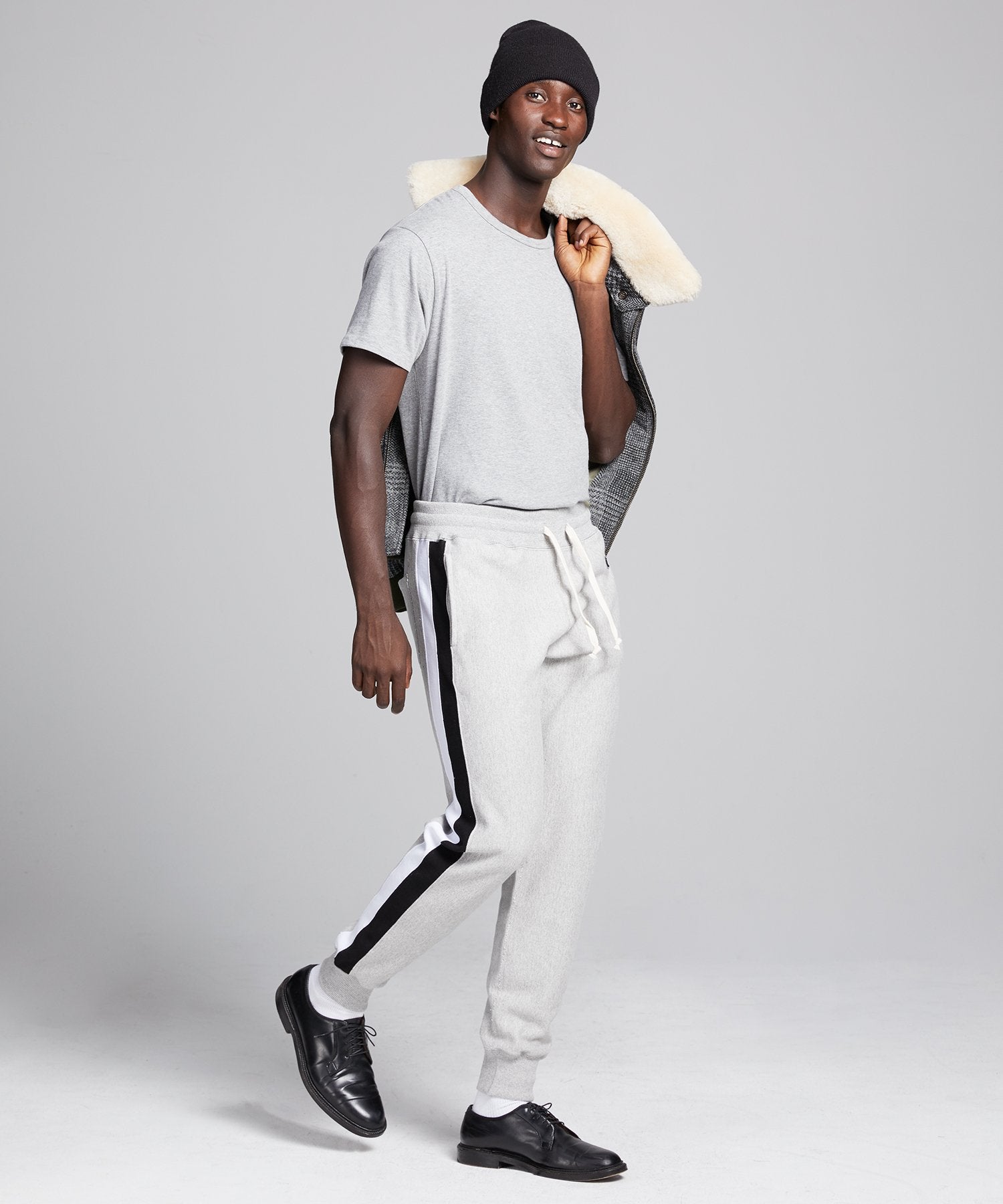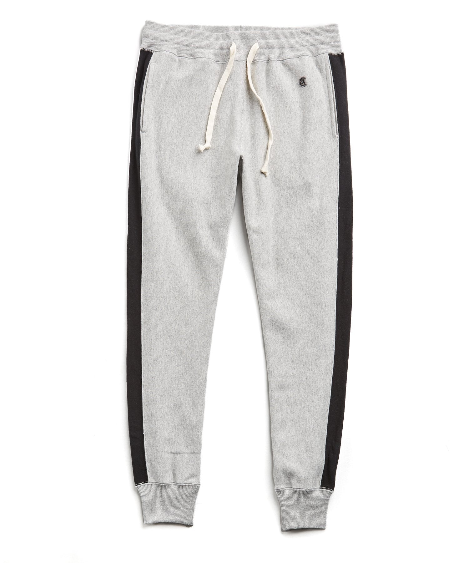 A more closely cut version of our classic sweatpant, it features applied jersey side stripes for a lived-in texture and a unique, well-loved look. Made in Canada from 20-oz. French terry, it’s finished with ribbed cuffs, two side seam pockets, and elasticated waist with exterior drawcord. A perfect match with the double stripe raglan sweatshirt or paired with a tee and button down for a riff of street smart style. Created in collaboration with iconic American athletic brand Champion Sportswear, and exclusively designed and manufactured by Todd Snyder.