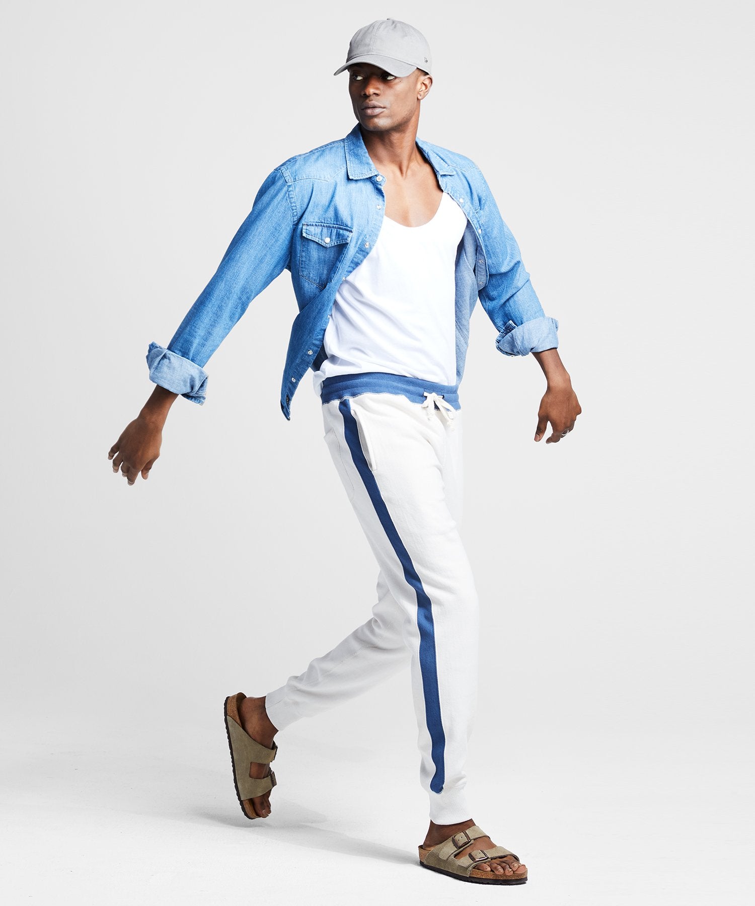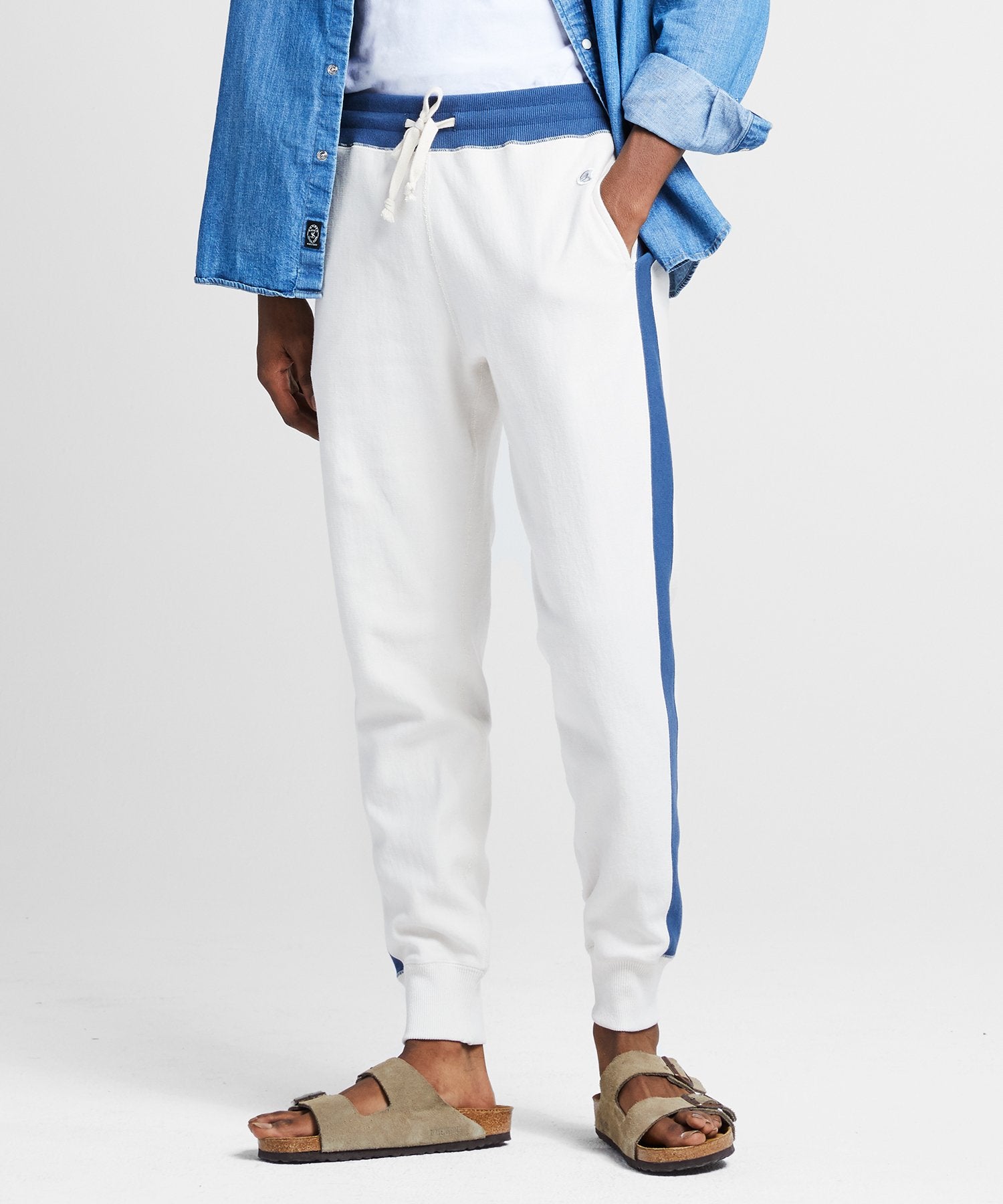 A more closely cut version of our classic sweatpant, it features applied jersey side stripes for a lived-in texture and a unique, well-loved look. Made in Canada from 16 oz. fleece, it’s finished with ribbed cuffs, two side seam pockets, and elasticated waist with exterior drawcord. A perfect match with our matching sweatshirt or paired with a tee and button down for a riff of street smart style. Created in collaboration with iconic American athletic brand Champion Sportswear, and exclusively designed and manufactured by Todd Snyder.