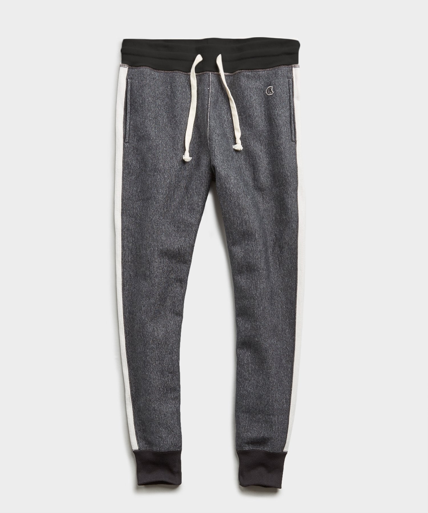 A more closely cut version of our classic sweatpant, it features applied jersey side stripes for a lived-in texture and a unique, well-loved look. Made in Canada from 16 oz. fleece, it’s finished with ribbed cuffs, two side seam pockets, and elasticated waist with exterior drawcord. A perfect match with our matching sweatshirt or paired with a tee and button down for a riff of street smart style. Created in collaboration with iconic American athletic brand Champion Sportswear, and exclusively designed and manufactured by Todd Snyder.