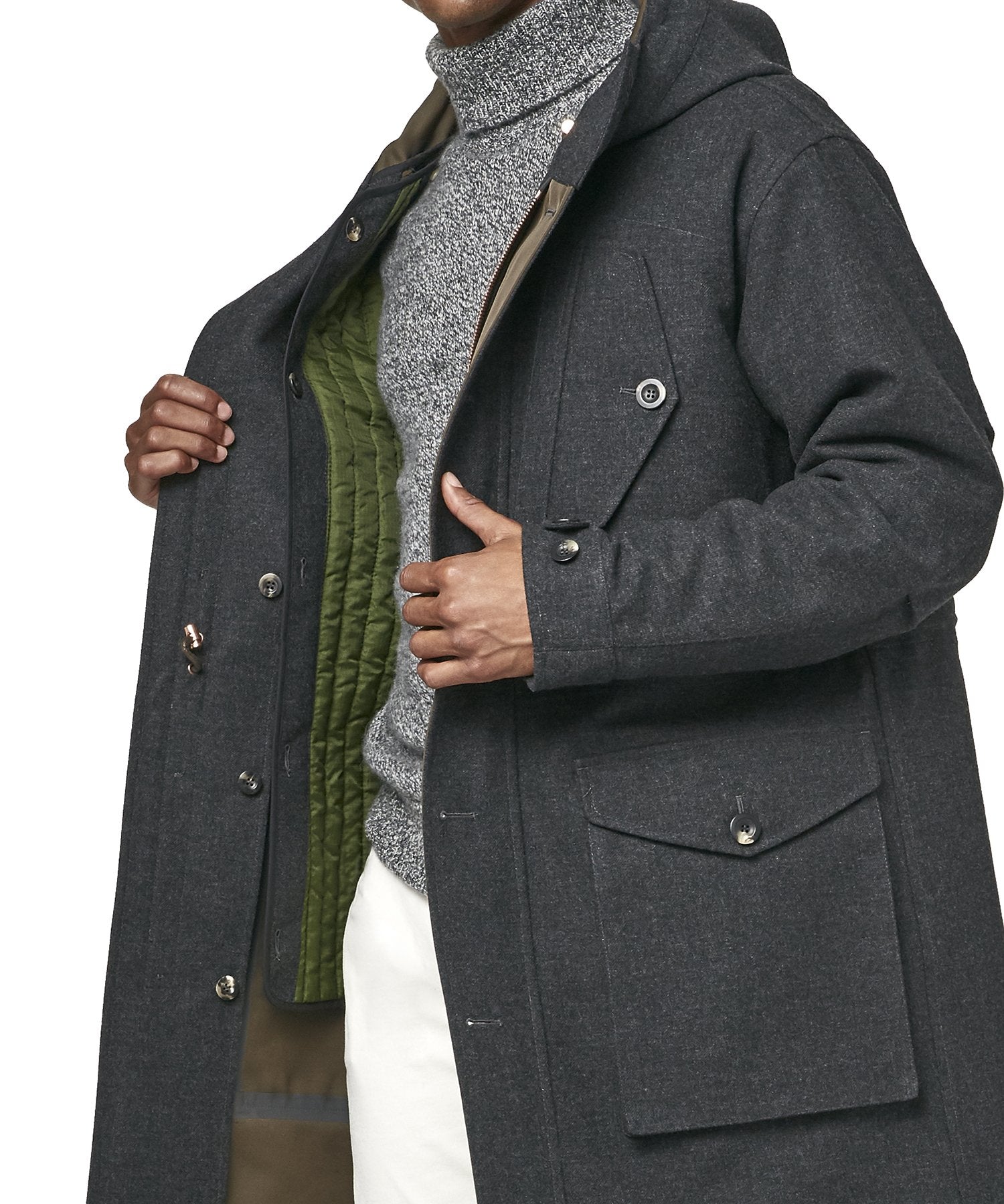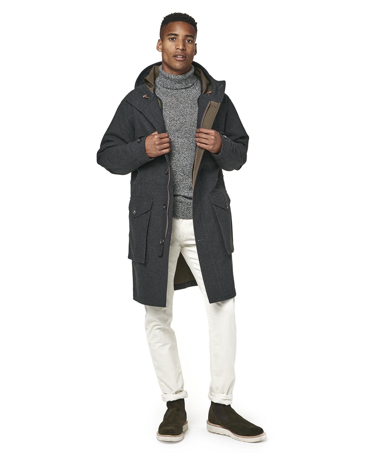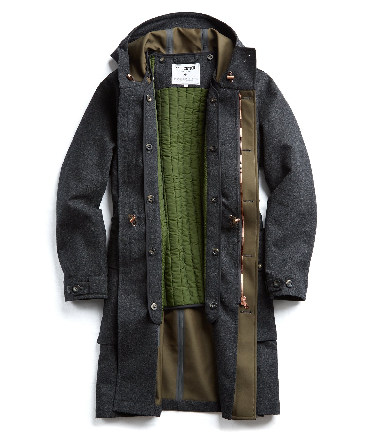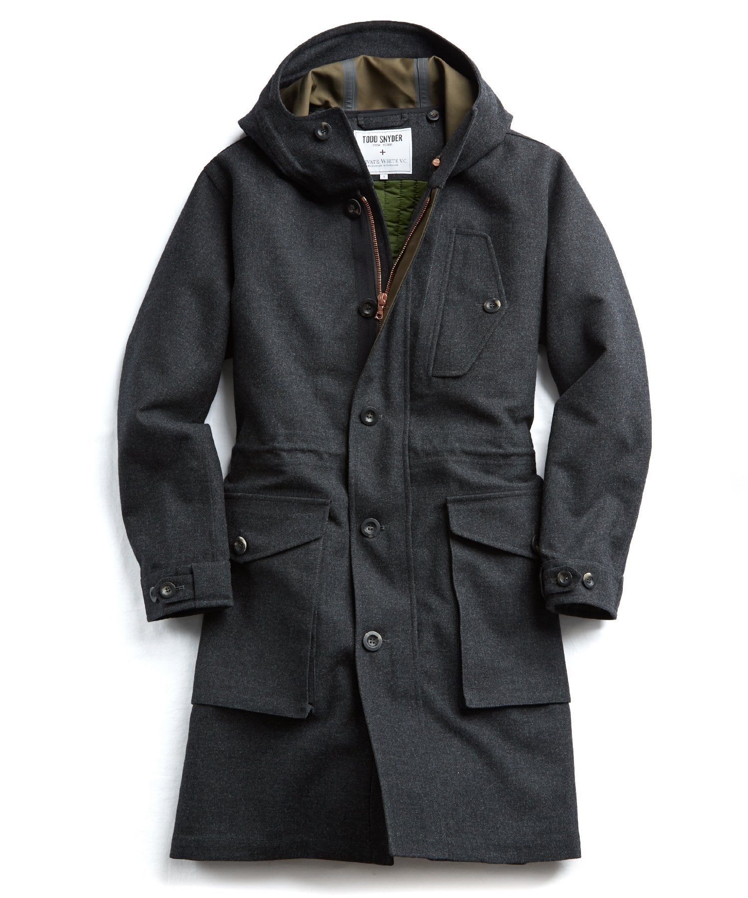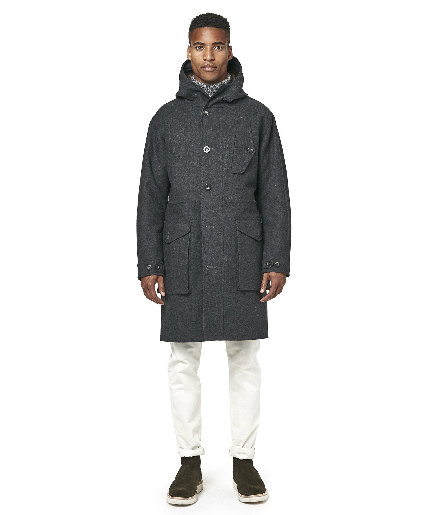 This handsome, hardworking winter topper is crafted in partnership with Private White VC, who have been making durable outerwear by hand in their Manchester, England, factory for over a century. Convertible and highly functional, it features a seam-sealed shell in bonded Italian wool and a fully removable liner.